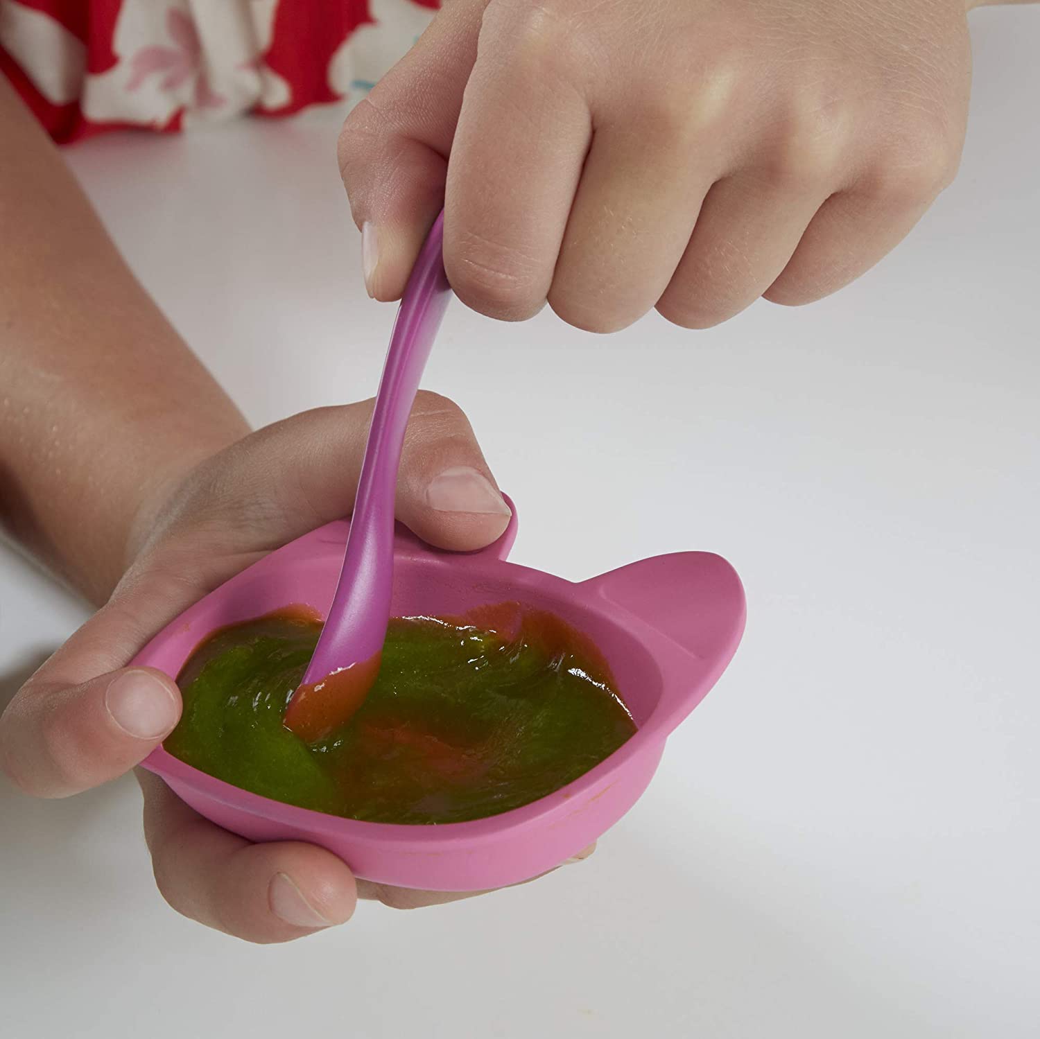- Opens wide for her spoon - happy Hungry baby really opens wide when you feed her. Feed her from her special spoon and she'll respond with 50+ sounds and phrases. She also moves and asks for more