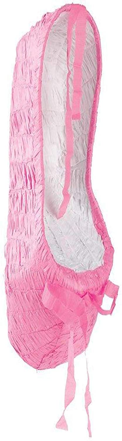 Celebrate the arts with our Ballet Slipper Pinata! Realistic Ballet Pinata features a classic pink ballet slipper en pointe with ribbon accents. Traditional design of Ballet Pinata requires you to break it to release contents (sold separately); use as a party game, hanging decoration, or elegant centerpiece! Ballet Slipper Pinata holds up to 2lbs of treats and measures 8in x 20in