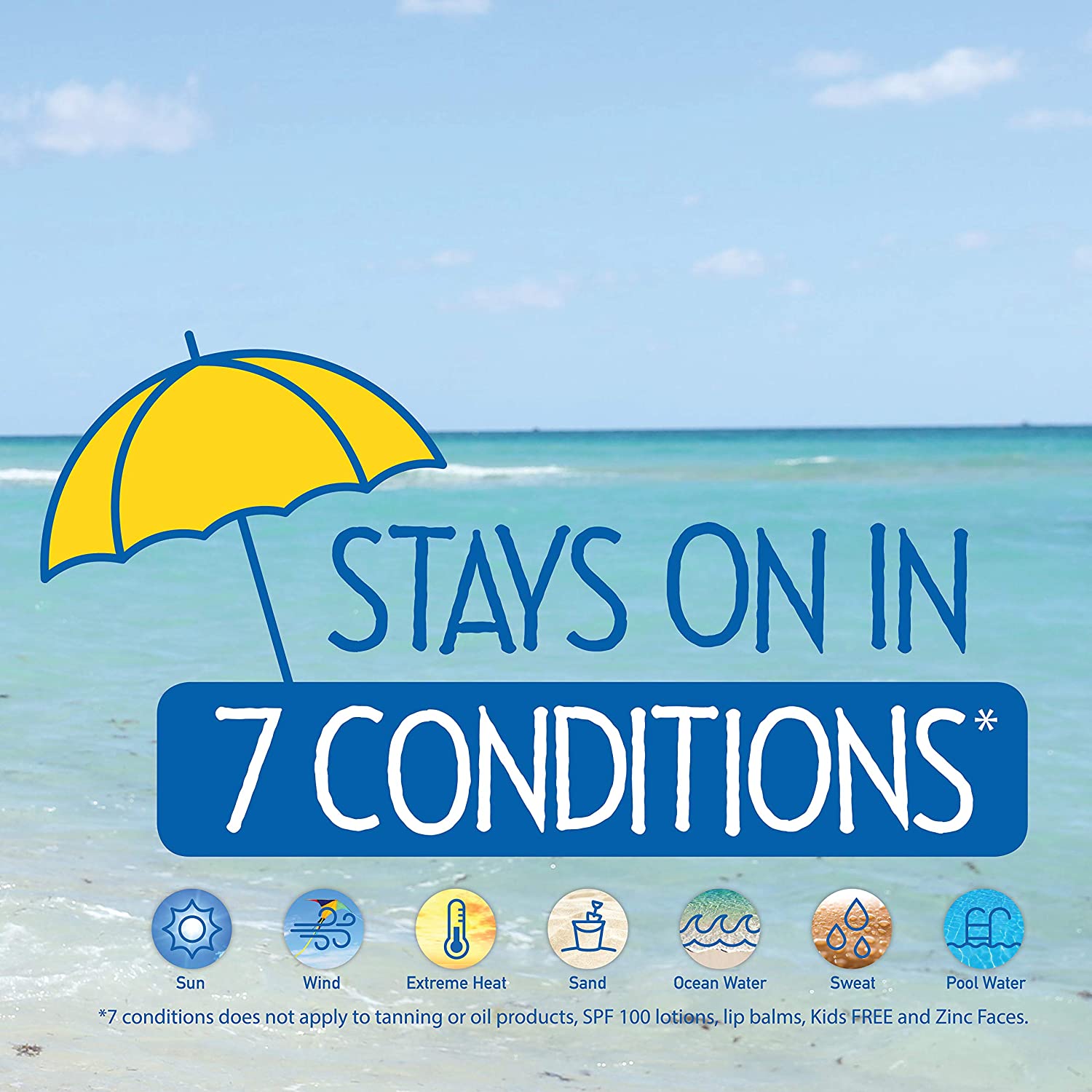 - Stays on in 7 conditions : Banana Boat stays on in the sun, pool water, ocean water, wind, sweat, sand and extreme heat.