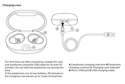 • Connectivity technology : Bluetooth. For first time use after unpacking, charge the case and earphones using the USB cable for at least 10 minutes. Do not take the earphones out during this time.If the earphones are at low battery, 20 minutes in the charging case equals up to 1 hour of playtime.Pairing - Keep a distance of less than 20 cm between the left and right earphones, touch and hold both for 5 seconds to initiate Bluetooth pairing. The indicator starts flashing blue and a sound prompt is heard. Turn on Bluetooth on your device and select Beoplay E8