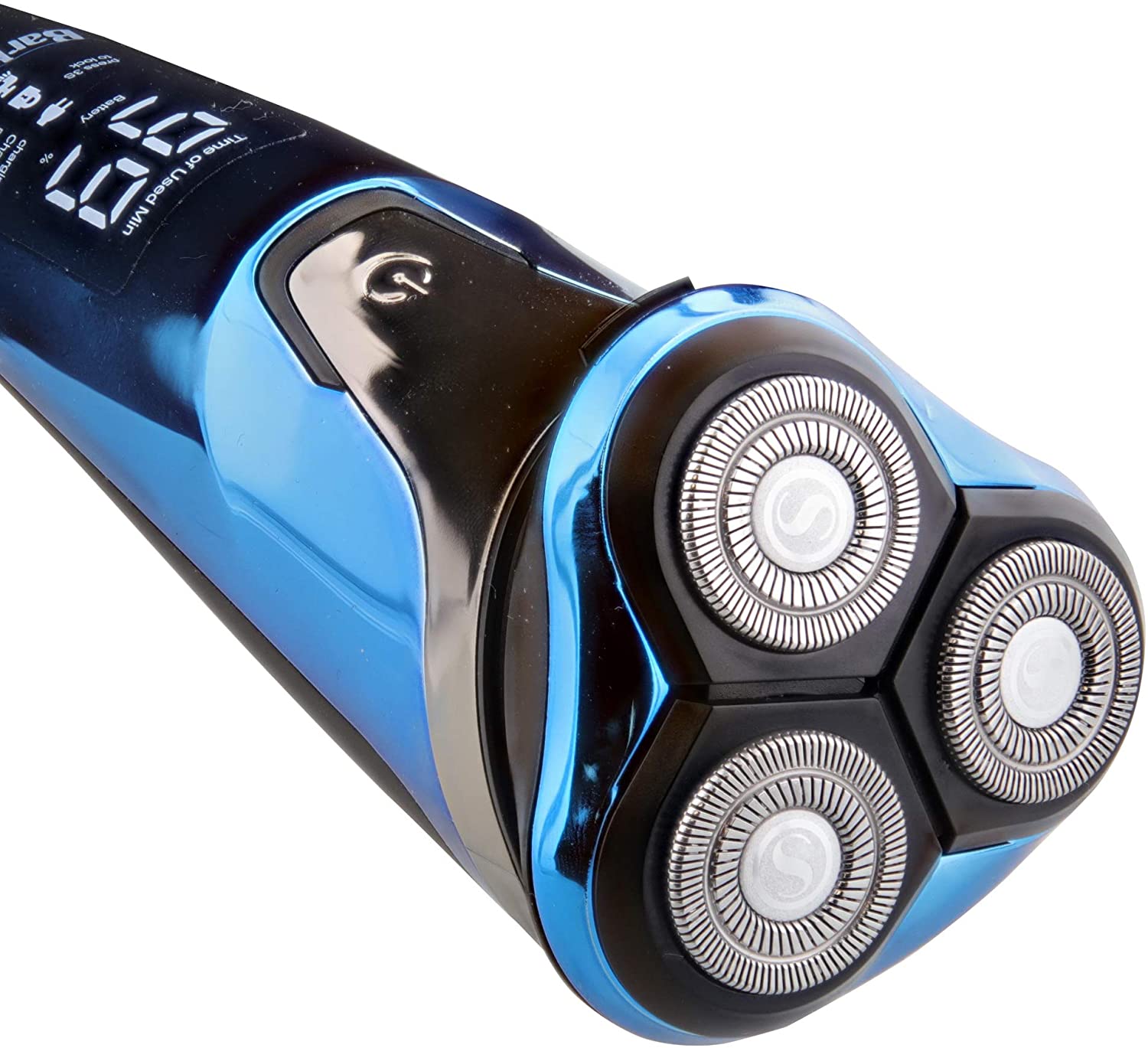 The Barbasol Rechargeable Wet & Dry Rotary Shaver with LCD Screen provides a close shave with the use of shaving cream or gel. The stainless steel blades contour to any angle on the face to deliver a close, comfortable shave and the pop-up trimmer refines and styles sideburns and facial hair. The rechargeable battery fully charges in 8 hours for up to 45 minutes of shaving time and the LCD screen clearly shows the current battery percentage.