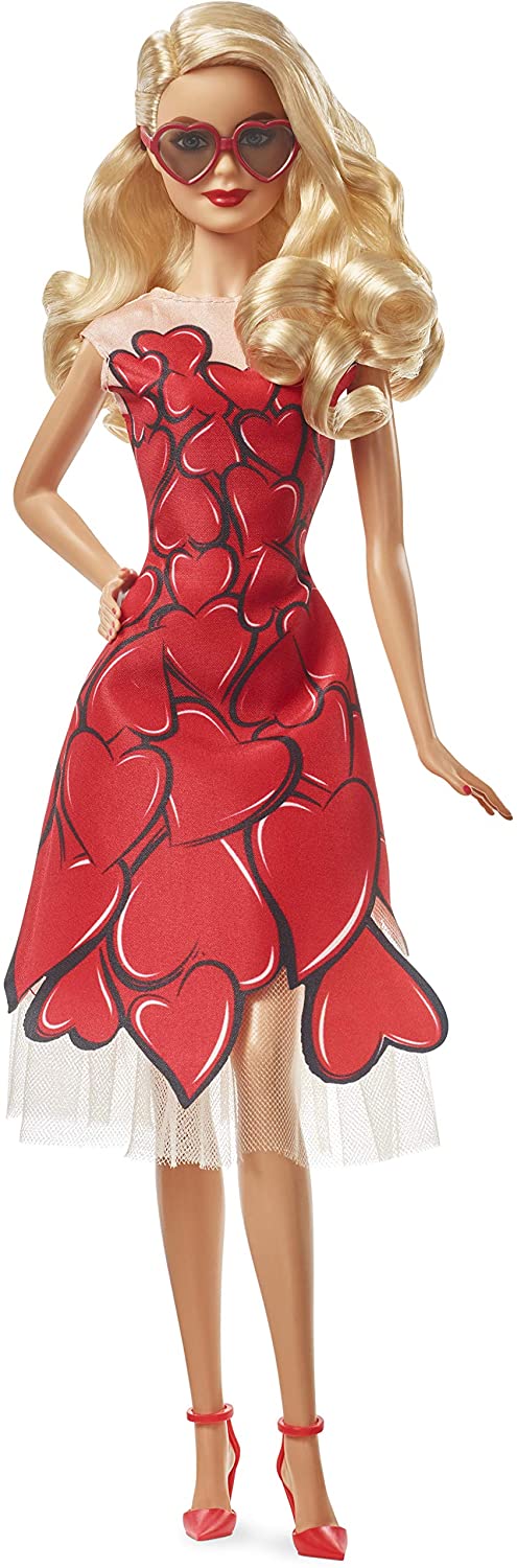 Barbie Celebration doll features a sweet look and customizable packaging to help you celebrate someone special. This collectible Barbie doll makes the perfect gift for any occasion -write a personalized note on the package and add the finishing touches with fun icon stickers. Barbie Celebration doll wears a bold, asymmetrical dress inspired by the universal symbol of friendship -the red heart. Chic details, like heart-shaped sunglasses and red stilettos finish the look. Celebrate someone special -tell them you love them, you're thinking of them or congratulate them with Barbie Celebration doll! Subject to availability. Colors and decorations may vary.