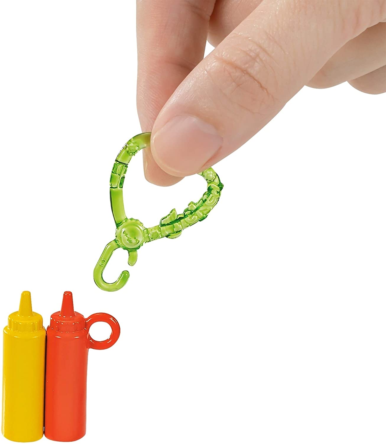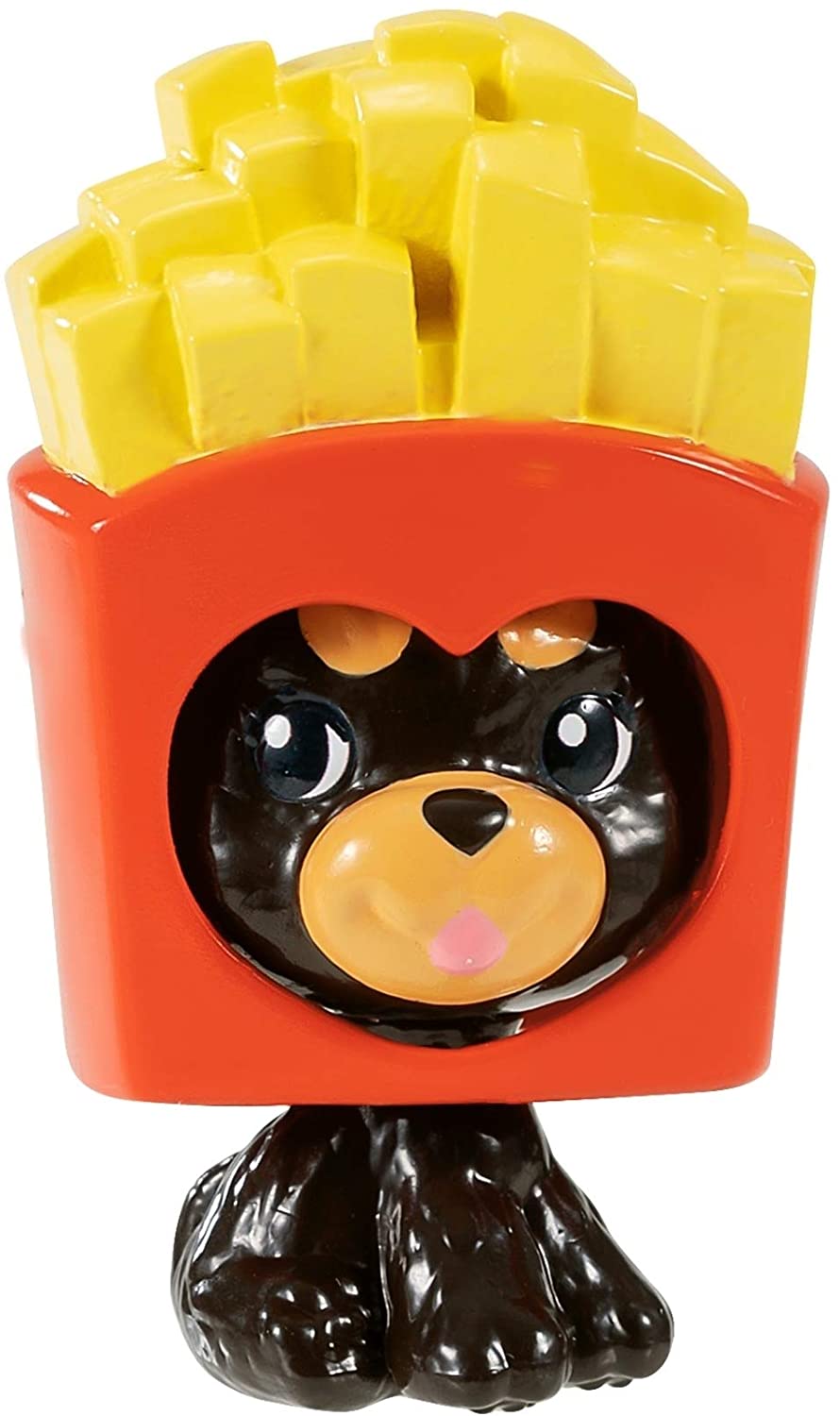 Young imaginations can tell so many sweet stories with Chelsea dolls and pets in themed costume fashions! This Chelsea dress-up doll is super-cute in a burger costume with a sweet print and 'lettuce' ruffles. A soda cup headband and yellow shoes put the finishing touches on her look, and her puppy friend tags along in a matching costume. An included charm keychain makes it easy to clip Chelsea doll to a backpack or clothing, so kids ages 3 years old and up can take the dress-up fun on the go to wear and share with friends! Doll cannot stand alone. Colors and decorations may vary.
