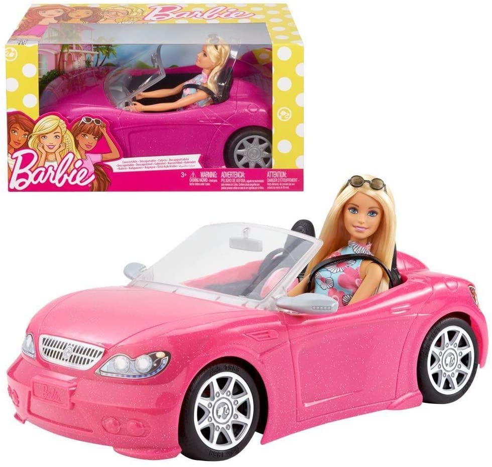 - Hit the open road with Barbie doll and her pink convertible!