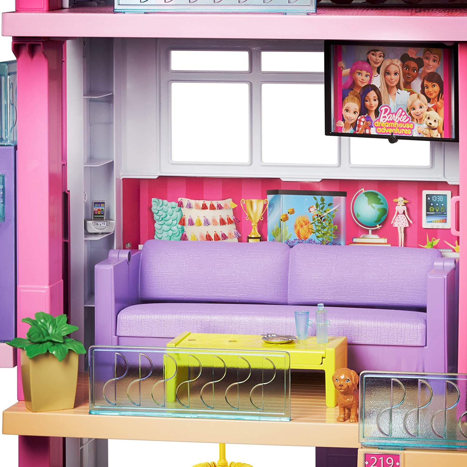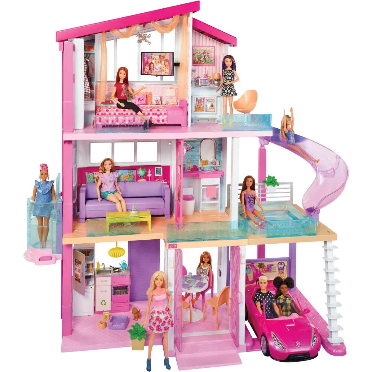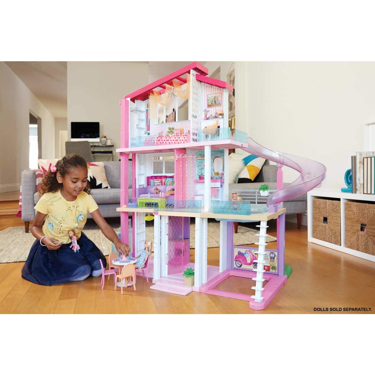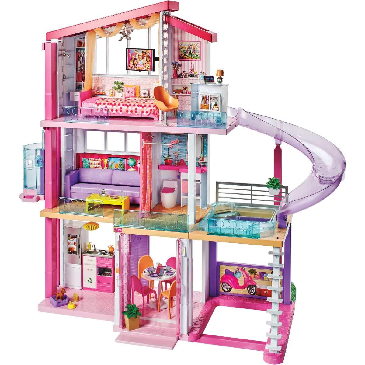 - Measuring an impressive 3 feet tall and 4 feet wide and featuring 3 stories, 8 rooms, all-angle play, a working elevator and pool with slide, the Barbie DreamHouse encourages young imaginations to move into this dollhouse and set up a dream home