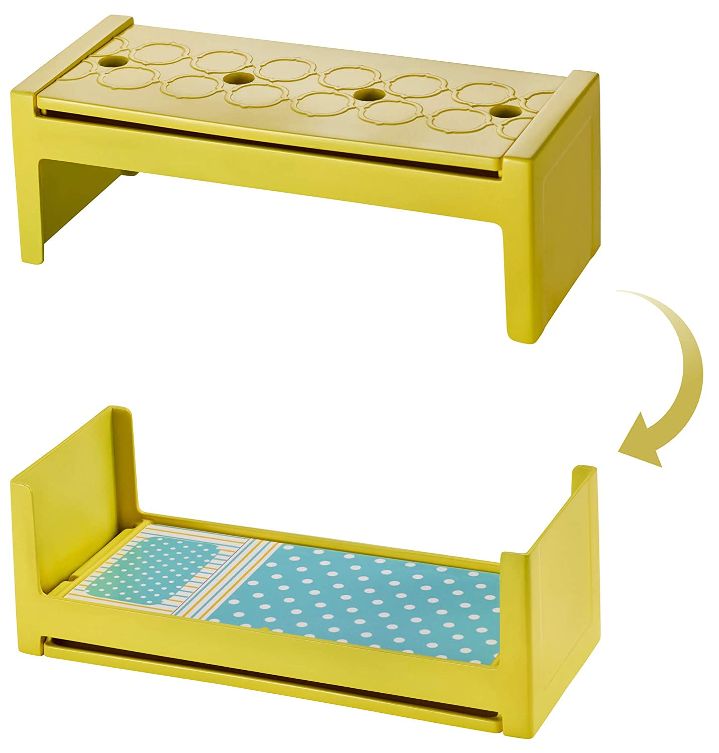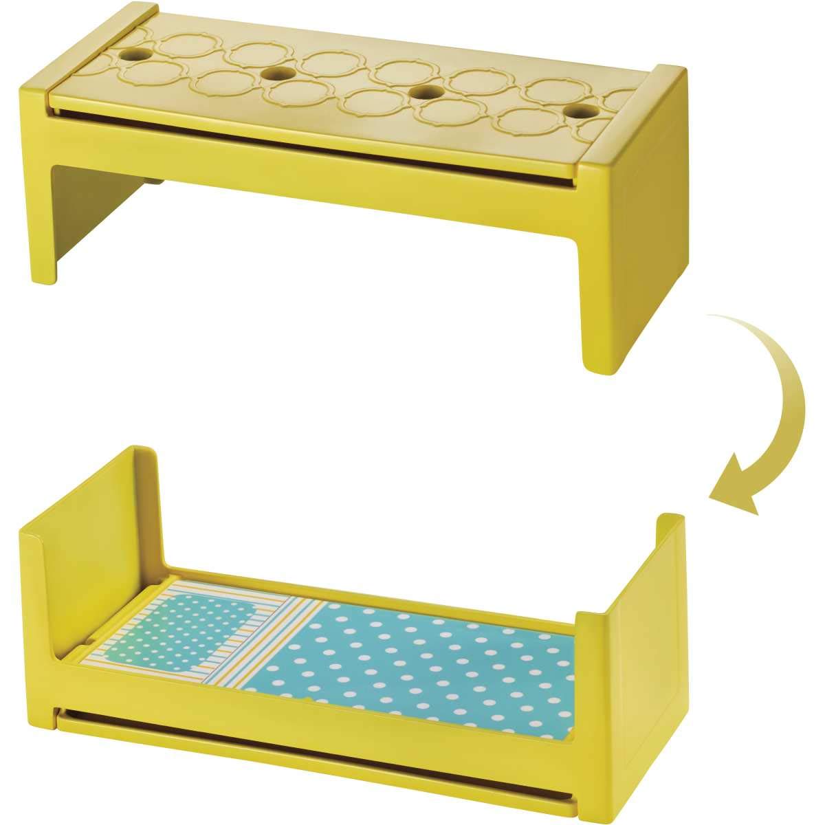 - Two-in-one fun expands the possibilities for play: the couch opens to create bunk beds and the coffee table flips revealing a bed for Chelsea doll (sold separately) to create a guest bedroom; the fireplace turns around to transform a cozy den into a home office; the kitchen sink does double duty with one side featuring a barbecue and shelves and the other with the oven and a recycling bin; and the back of the refrigerator is an outdoor food stand