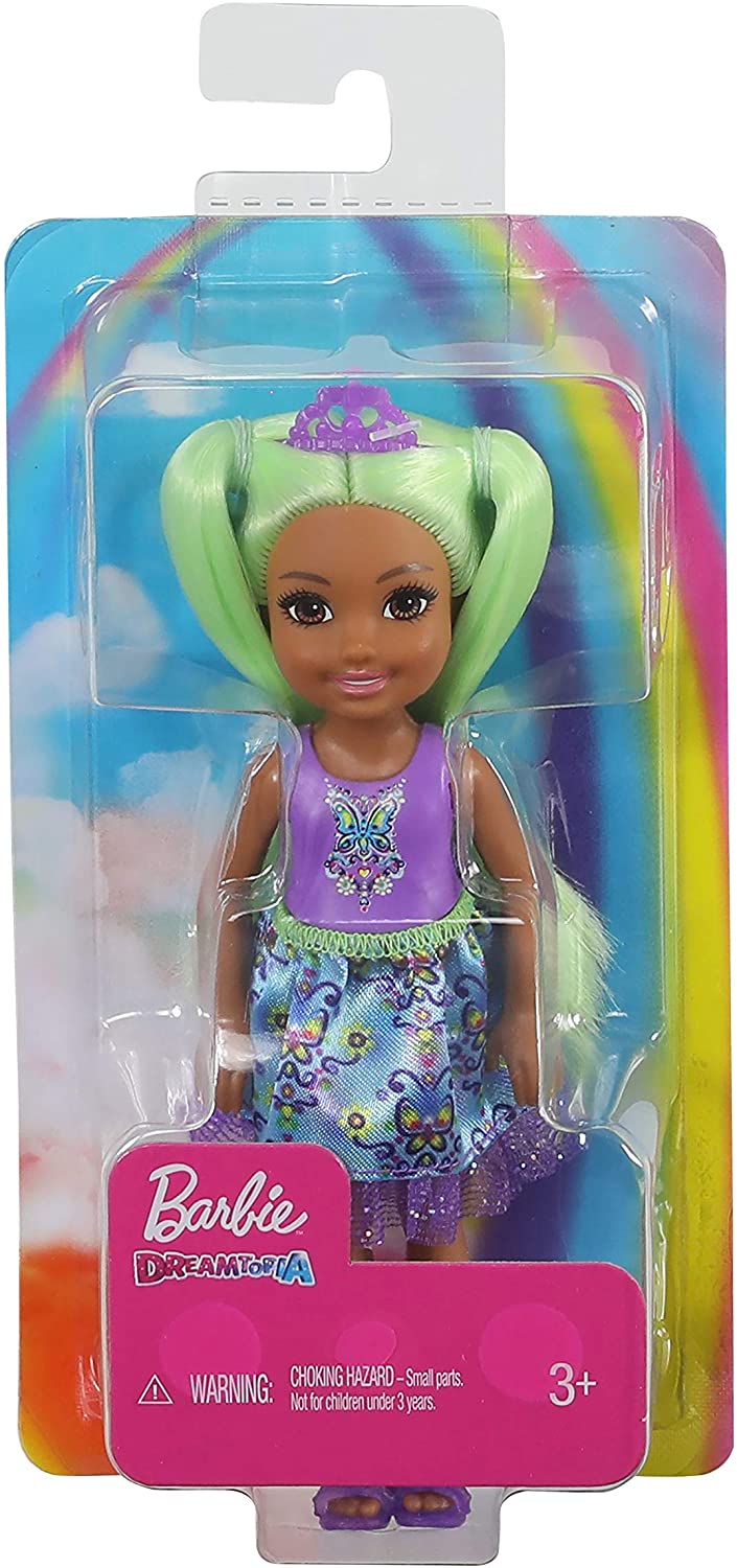 Barbie Dreamtopia Chelsea Sprite Doll, 7-inch, with Green Hair Wearing Fashion and Accessories, Multi (GJJ95)