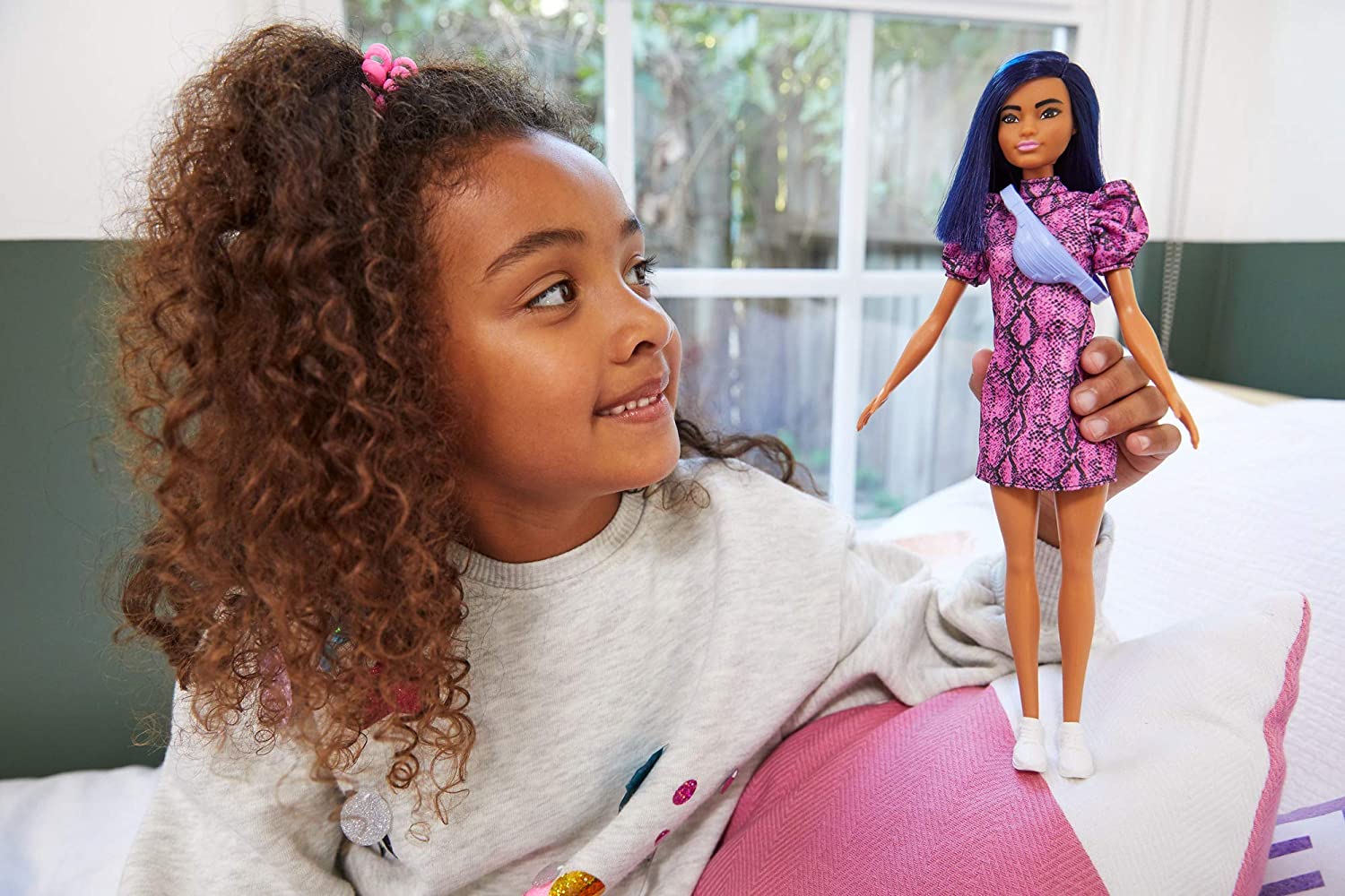 Barbie Fashionistas Doll #143, with Pink Snake Print Dress and Over The Shoulder Bag Toy for Kids 3 to 8 Years Old