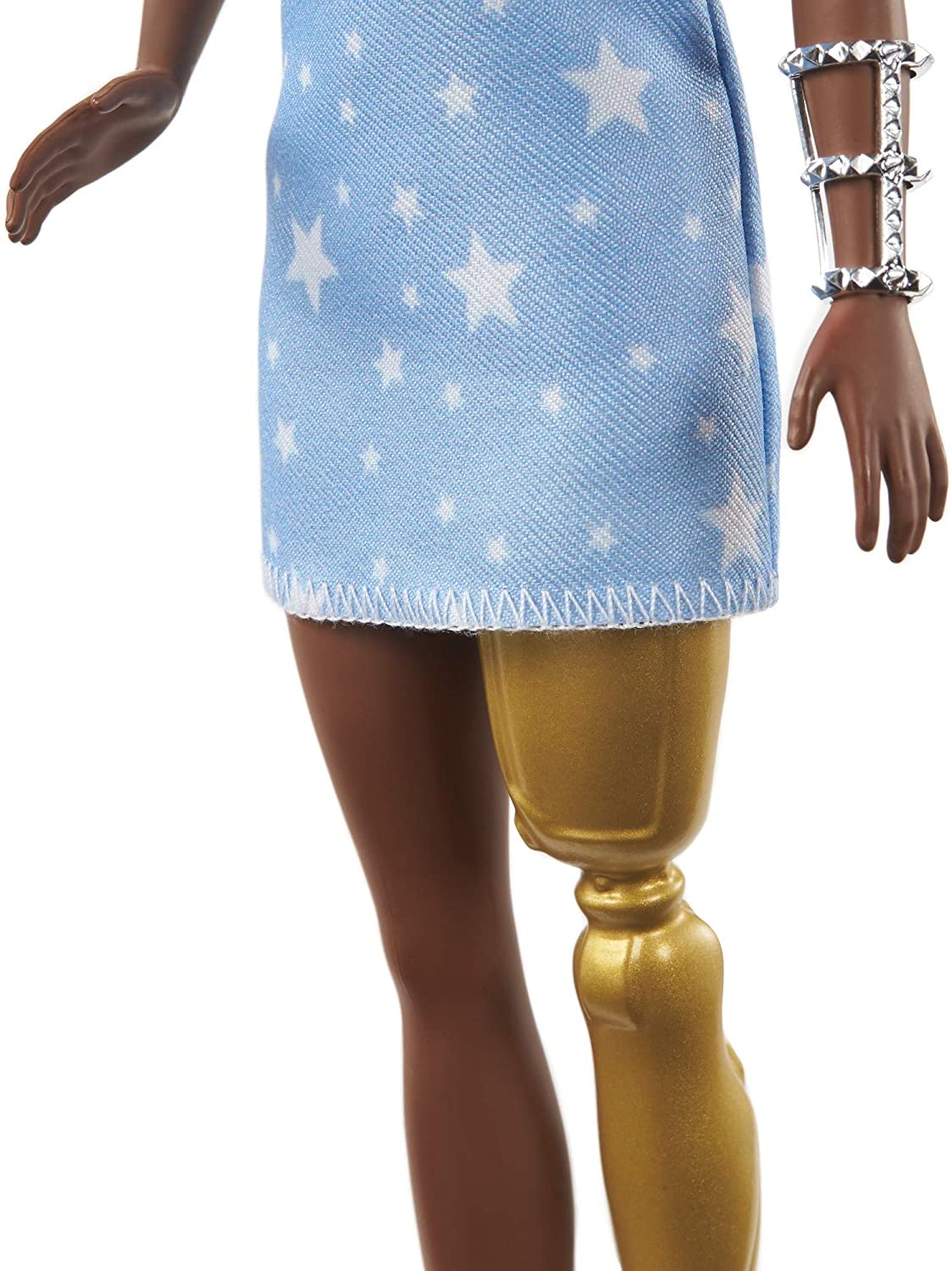 - Barbie doll has a limb difference and wears a prosthetic leg -- kids can easily take it on and off to add a unique element to storytelling.