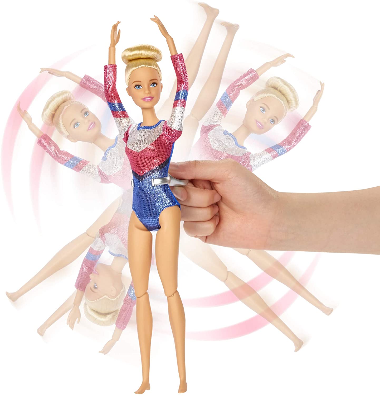• ​Attach spinning clip to Barbie Gymnast doll and watch her flip across the beam and perform other fun gymnastic moves