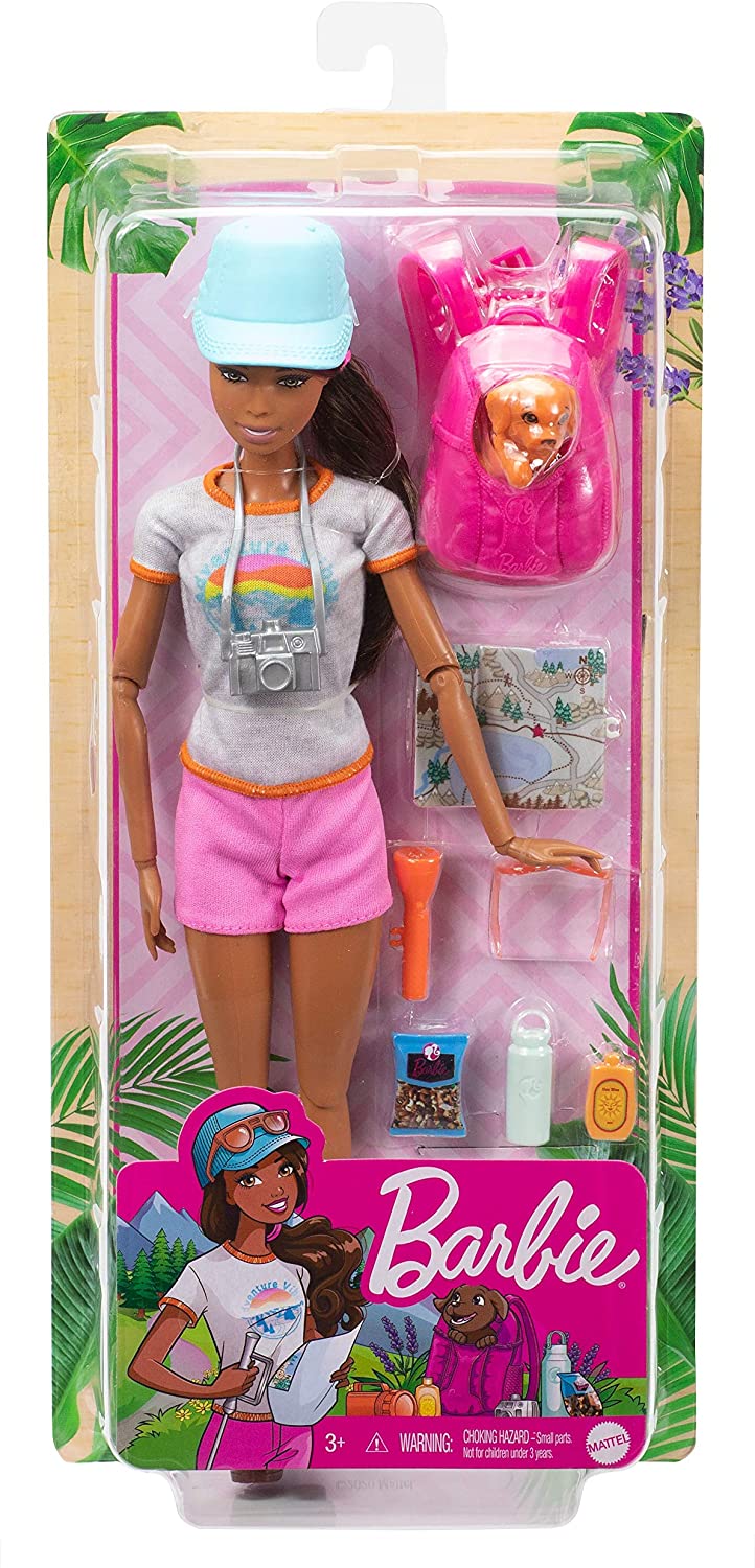 Barbie doll knows the way to be one's best is to give yourself the best care! This hiking-themed doll and accessory set celebrates one of her favorite ways to recharge -- it includes a doll, a puppy and nine themed toys that let kids play out a moment in nature hiking. Barbie doll wears a sporty look, and the many storytelling pieces encourage exploration and play. Some accessories have a handle Barbie doll can hold for easy role-play fun. Kids can collect all the Barbie wellness dolls to expand the possibilities even more because when a girl plays with Barbie, she imagines everything she can become (each sold separately, subject to availability).