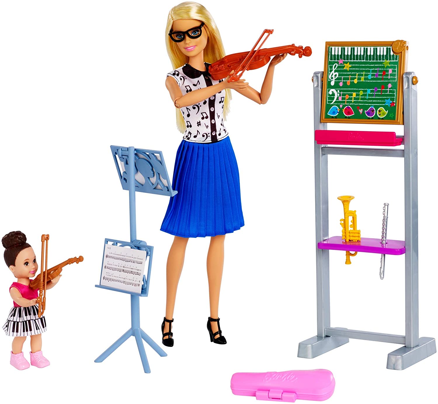 Barbie career dolls and playsets inspire kids to dream big and aim high! these Barbie playsets turn work-time into playtime with job-related furniture and accessories that let young professionals explore their dream careers. Etis student for the teachers playset includes a special element for even more storytelling possibilities. PLUS, cool working features add realistic role-play and all-day fun. Each Barbie doll wears a career-themed outfit and has additional accessories to help her succeed. Kids will love the opportunity to try different careers and explore their dreams. Pick one profession or try them all because with Barbie, you can be anything! includes Barbie doll wearing career-themed outfit and accessories, a larger piece of furniture and themed accessories. Each sold separately, subject to availability. Dolls cannot stand alone. Colors and decorations may vary.
