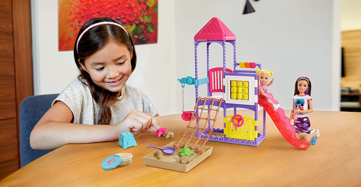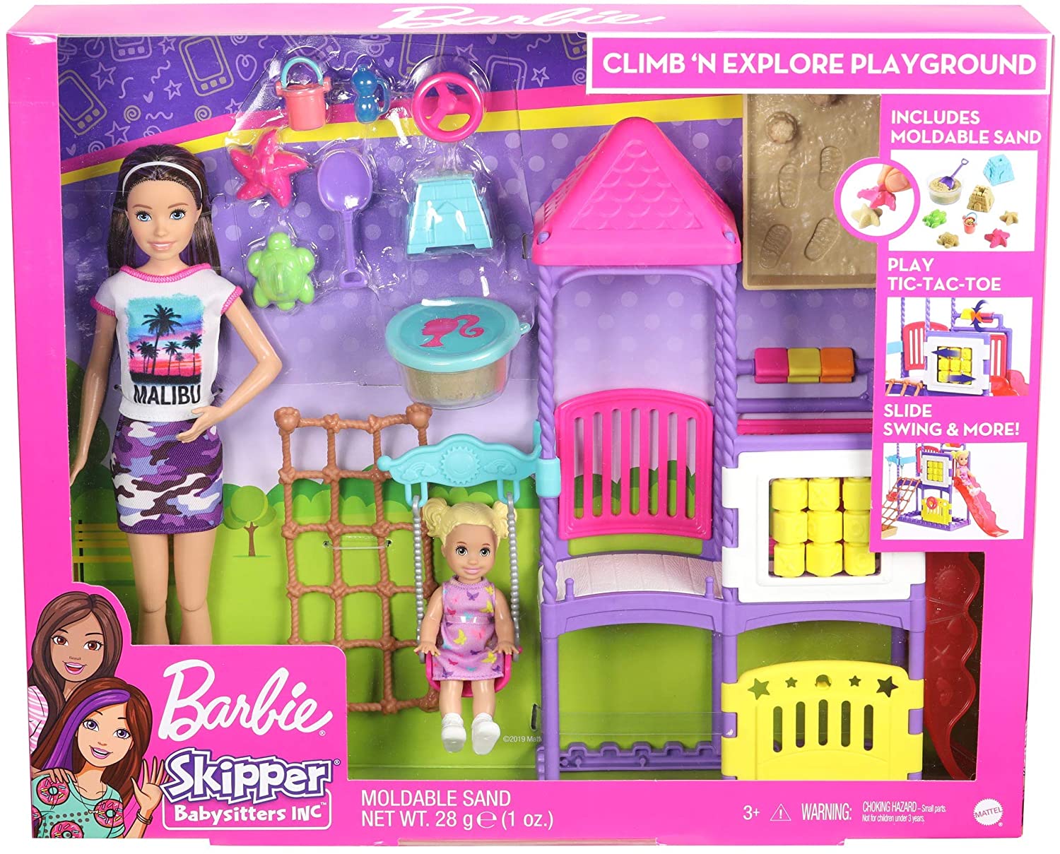 Barbie Skipper Babysitters Inc. Climb 'n Explore Playground Dolls & Playset with Babysitting Skipper Doll, Toddler Doll, Play Station, Moldable Sand & Accessories for Kids 3 to 7 Years Old