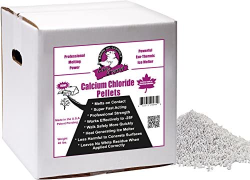 Bare Ground Calcium Chloride Pellets are a fast-acting de icing solution that melts snow and ice on contact. Calcium Chloride (CaCl2) is exothermic which means these Bare Ground pellets will generate heat, burning hotter and melting snow and ice faster. The professional grade formula works down to -25 degrees Fahrenheit, leaves no white efflorescence, and is less damaging to concrete. The 40 lb box of CaCl2 pellets is easy to ship and stores neater than plastic bags. Carry slots on the side of the box make it easy to pick up and move. Each box is lined with a plastic bag that contains the coated granular blend preventing spills and leakage.