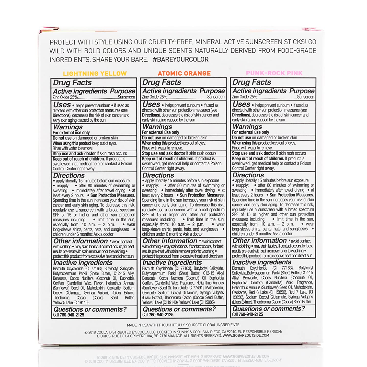 • BARE YOUR COLOR. Who said sun protection had to be dull? Protect with style using our cruelty-free mineral active sunscreen sticks! Go wild with bold colors and unique scents derived from food-grade ingredients.