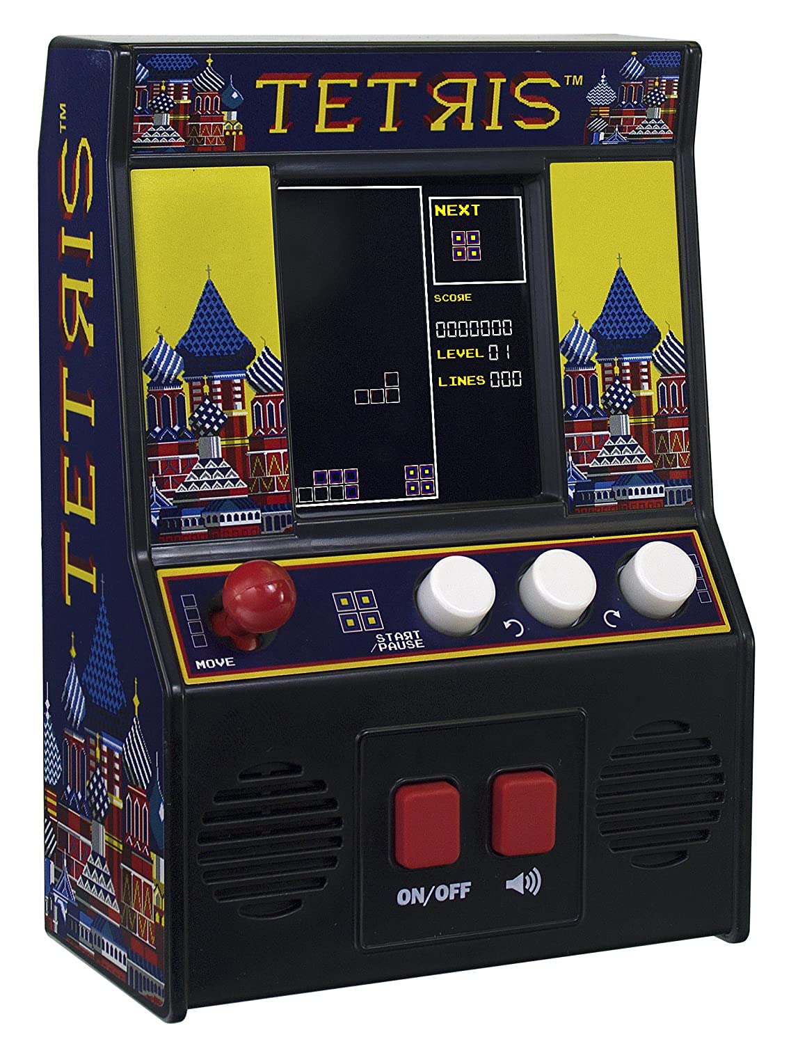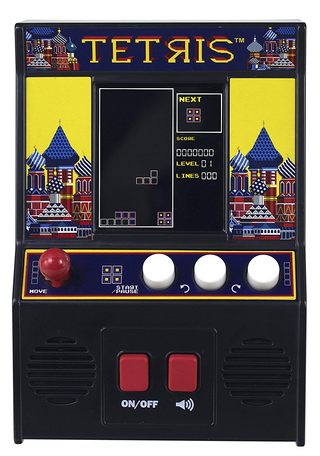 One of the most recognizable and influential video game brands in the world, Tetris has transcended barriers of culture and lanugage for 30 years! Rotate, move, and drop a procession of Tetriminos in the rectangular Matrix to complete horizontal rows of blocks without empty space. But beware, Tetriminos drop faster and faster as you play, and if they surpass the Skyline, the game is over! Relive the arcade experience with this miniature version that you can take with you anywhere!