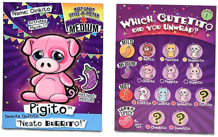 - Each Cutetito has a personality "Hot Spot" that you discover when you unwrap it—it could be mild, medium, hot or super spicy!