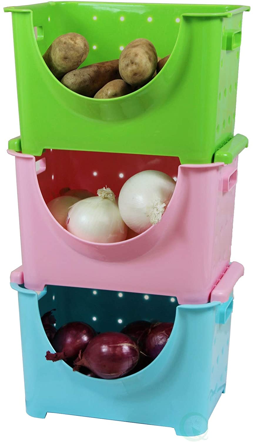Basicwise Plastic Storage Containers Stacking Bins (Set of 3), Multicolor