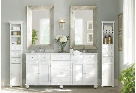 The Hampton Bay 15 in. W Linen Cabinet in White offers versatile styling for any room. A beautiful bottom door opens to reveal a spacious interior with two adjustable shelves, while three drawers provide extra space for household items. Crafted with solid wood and wood veneer, the durable cabinet features several distinctive details, including crown moulding, bun feet and a recessed panel design, creating a piece that is both decorative and fully functional.
