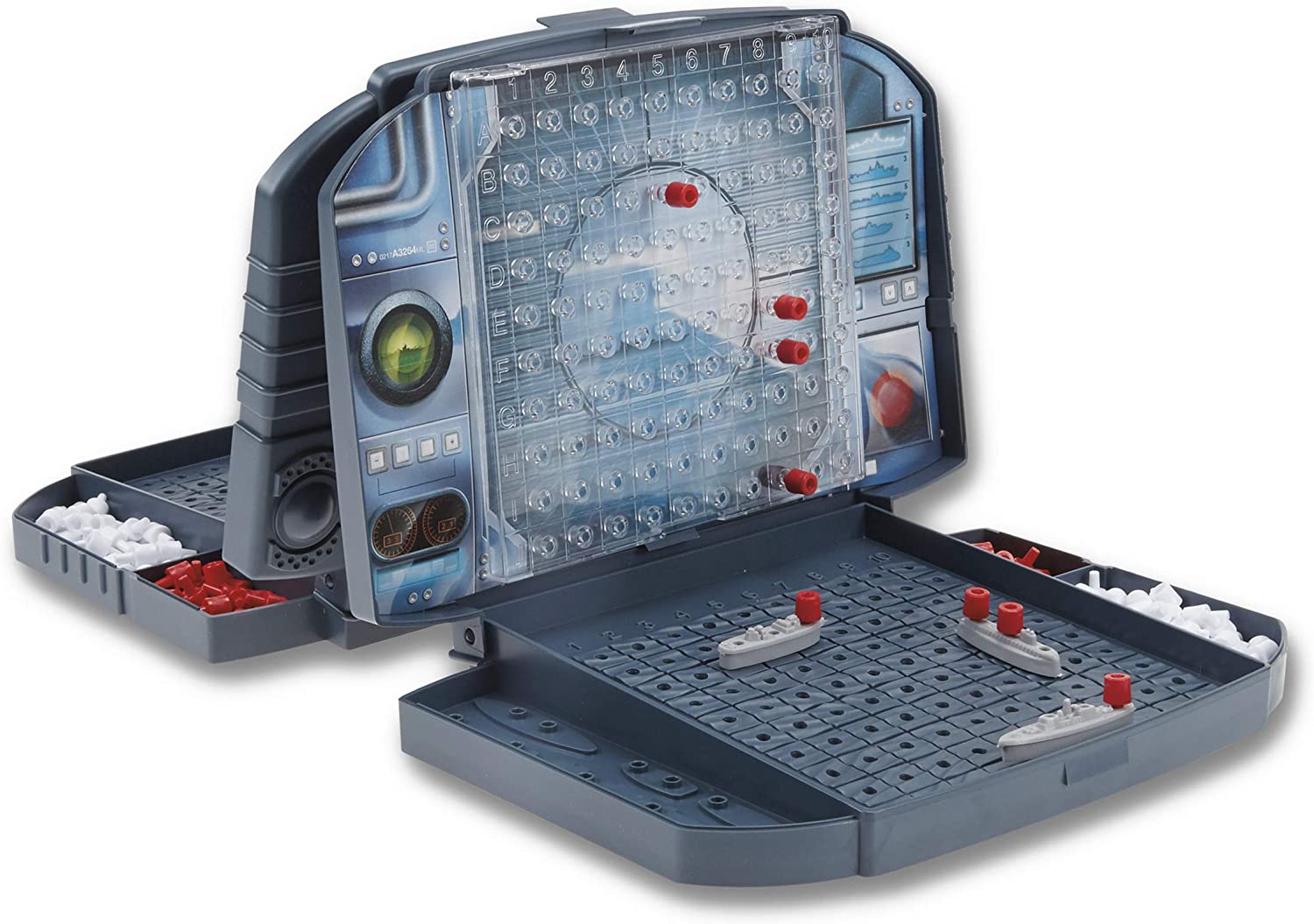 This Battleship board game is the classic game of naval combat that brings together competition, strategy, and excitement! In head-to-head battle, 2 players search for the enemy's fleet of ships and destroys them one by one. With convenient portable battle cases and realistic looking naval crafts, the Battleship game puts players right in the middle of the action. Players command a powerful fleet that includes an aircraft carrier, a destroyer, a submarine, a patrol boat, and a battleship. Each player announces the coordinates of each strike and sees if it hits. Position ships strategically to survive an opponent's relentless strikes, and track hits and misses with red and white pegs on the ocean grid. No ship is safe in this game of stealth and suspense. Kids ages 7 and up can enjoy playing the Battleship classic board game. It's a great indoor activity. Packaging may vary. Subject to availability. Battleship and all related characters are trademarks of Hasbro.
