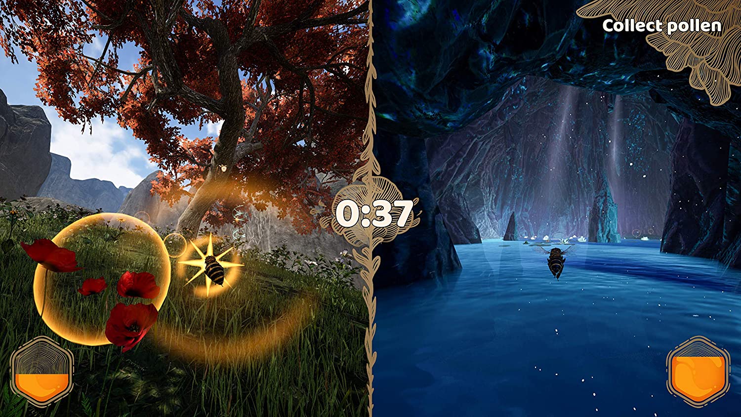 See the world through the eyes of a Bee! Explore a world inspired by Central park where you can take part in Bee races, collect pollen from rare flowers and defy dangerous wasps. The hive awakens as the sun's first rays warm the Horizon. It's time to test your Wings, receive orders from the Queen and begin your first mission. And that's just the Start of your adventures. Humans want to cut down the tree that holds your hive, so your fate - and that of the whole swarm - rests on your Tiny shoulders! Play with friends or family in three game modes, including co-op and PvP on split screen.