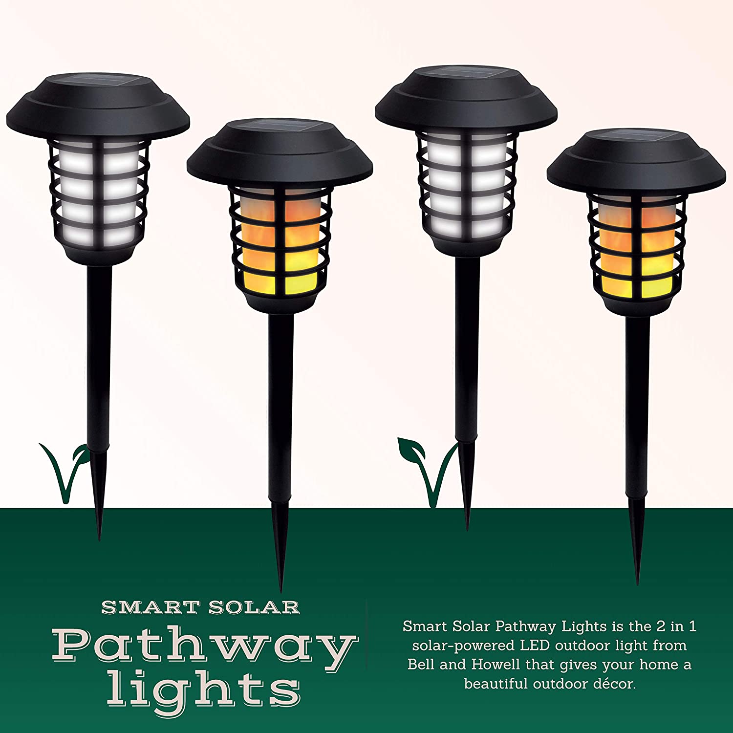 Forget about complicated wiring. Bell+Howell Solar Lights are solar powered so no more worries about running out of a power source, simply allow the lights to sit out in the sun and you will have 21 lumens of super bright lighting every day! Also you can get a flame and super bright pathway solar light with just one unit. Enjoy the beautiful super bright White light or switch to a more cozy ambience with flame mode.