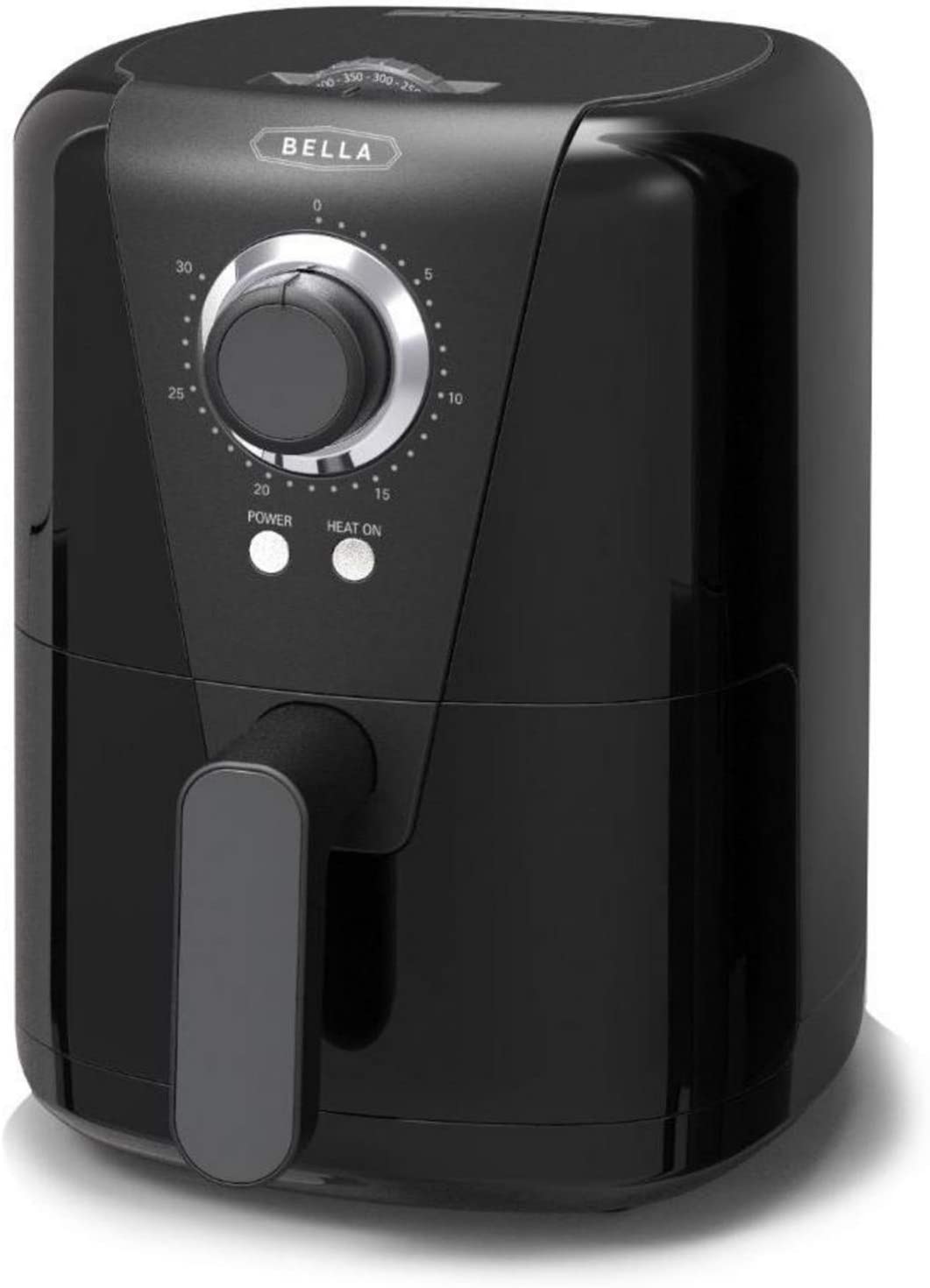 Air Fry, Bake, Saute, Steam Grill and Roast with The BELLA 1.6 QT Air Convection Fryer. This Air Fryer uses High Performance Circular Heat Technology for fast, crispy and evenly cooked food every time with the help of the powerful 1000 watt heating system. By cooking with little to no oil, French Fries have 77% less fat and 61% fewer calories than typical fast food restaurants. Save money on oil and your power bill, with no need to fire up your oven. Enjoy convenient air frying with the power and ready indicator lights, adjustable temperature control up to 400F and 30 minute auto shutoff timer with an audible tone. Clean up is easy with the PFOA free and dishwasher safe nonstick pan and crisping tray. Approx. Shipping Dimensions: 20.66" x 10.62" x 26.77" Powerful 1000 watt heating system 1.3 lb food capacity Guilt free frying! Air Fry, Bake, Saute, Steam Grill and Roast – little to no oil is required 30 minutes auto shutoff timer with audible tone Stainless steel heating element for faster heat up and recovery High performance Circular Heat Technology circulates heat for fast, crispy and evenly cooked food every time No unpleasant oil odor Adjustable temperature up to 400°F PFOA free and dishwasher safe pan and crisping tray for easy clean up Power and ready indicator lights for hassle free cooking Cool touch handles for added safety