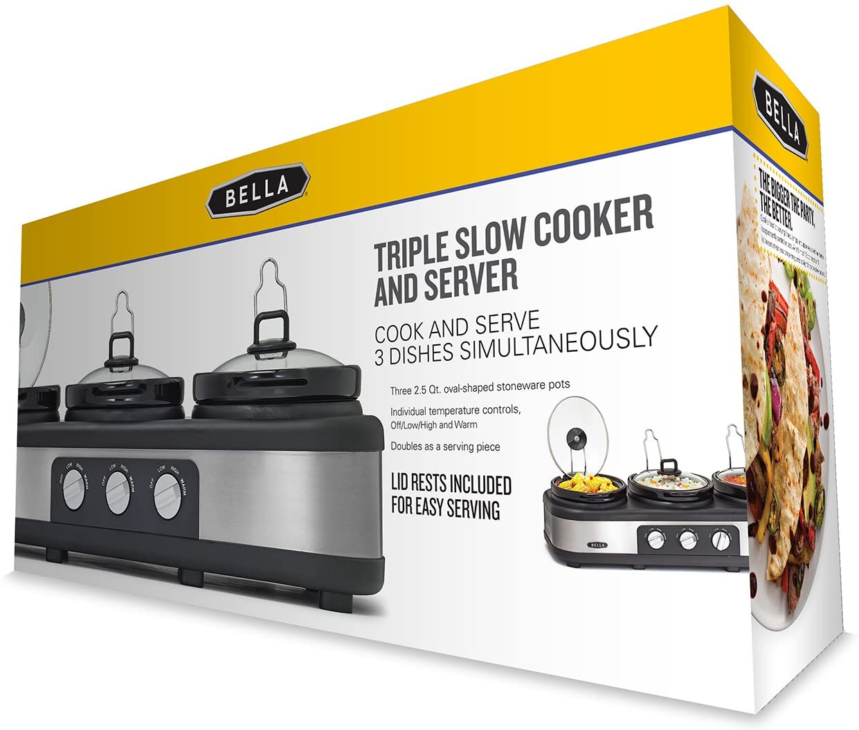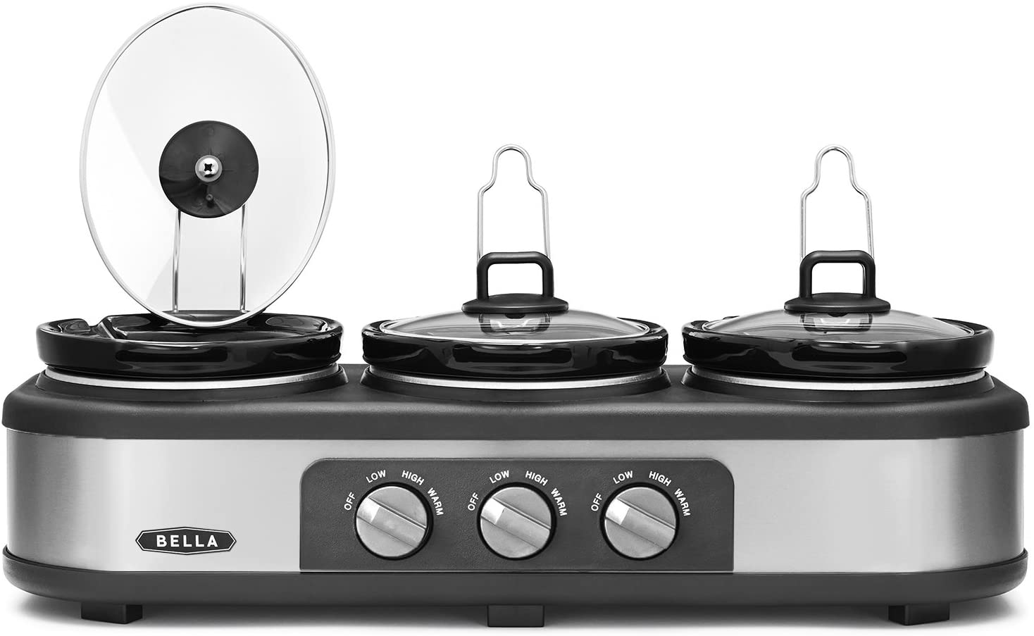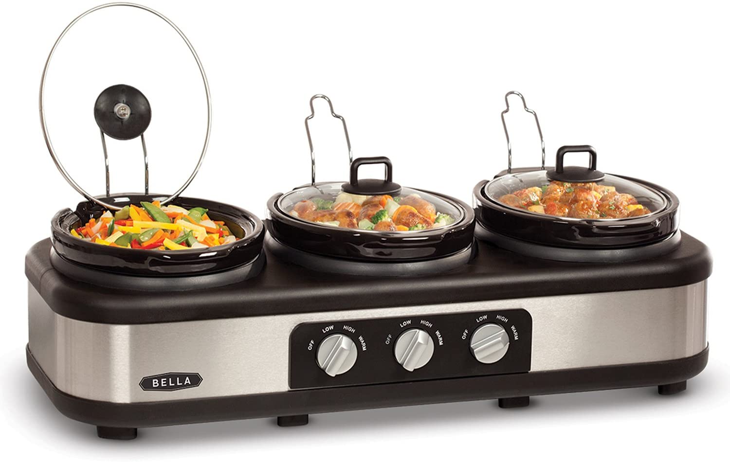 BELLA Triple Slow Cooker and Buffet Server, 3 x1.5 QT Manual Stainless Steel