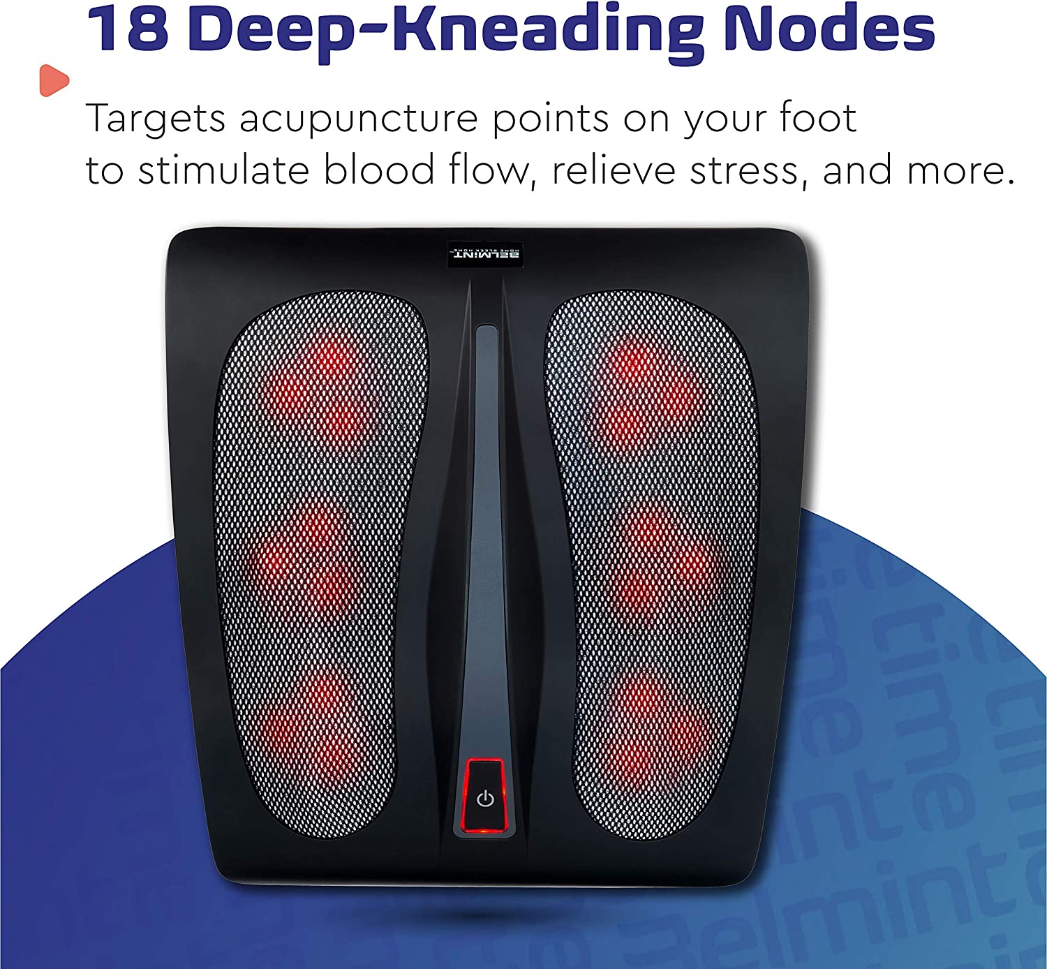 REST YOUR FEET ANYWHERE, ANYTIME - Our premium shiatsu foot massager with heat is portable to keep it under your table or desk, sofa, bathroom or office. It is equipped with 18 deep-kneading nodes that target acupuncture points on your foot which helps stimulate blood flow, relieve stress, reduce the effects of edema and alleviate symptoms of PMS and menopause. We GUARANTEE you will be satisfied using our product