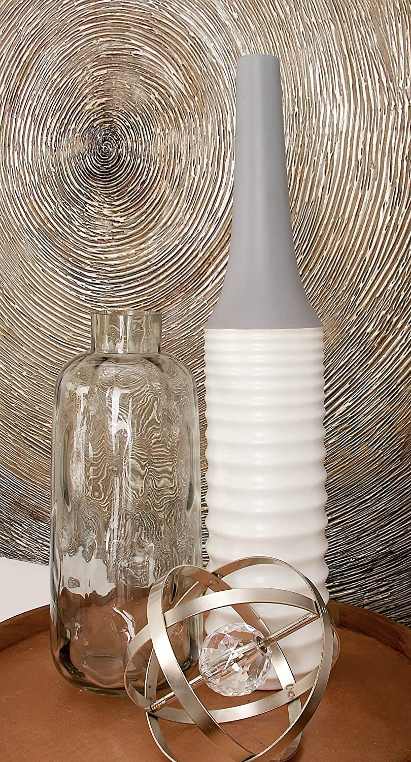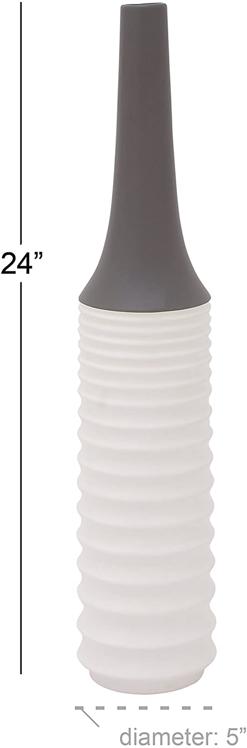 Benzara Ceramic White Grey Vase 5" W, 24" H