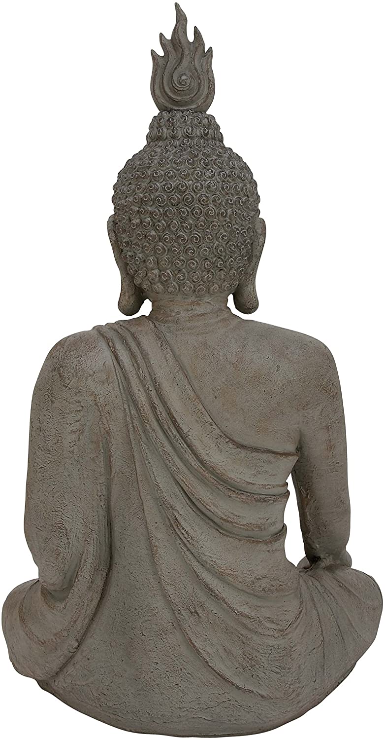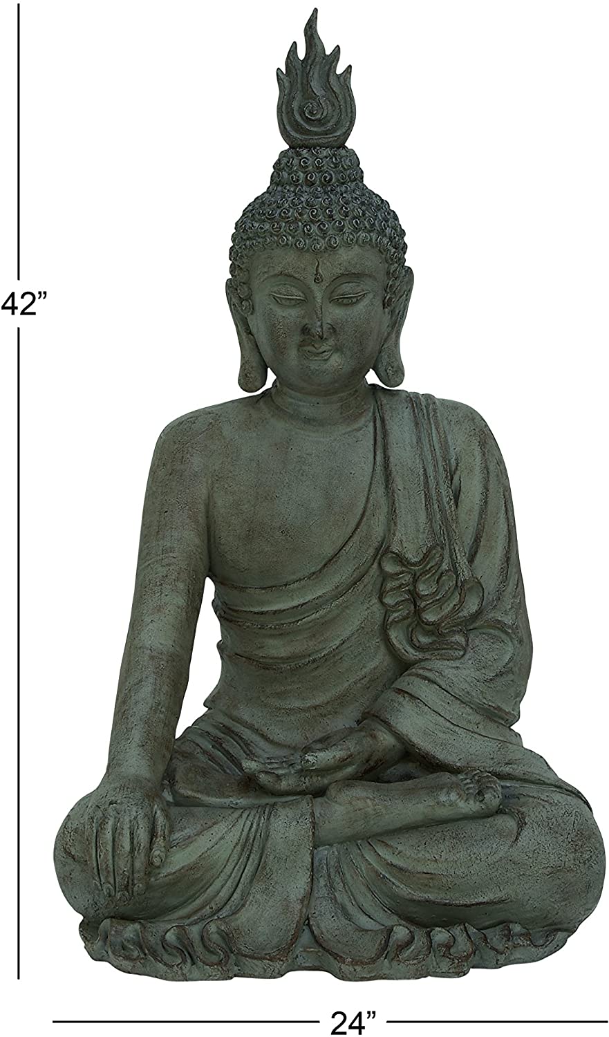 Bring enlightenment and wisdom into your home with the Deco 79 Traditional Gray Polystone Meditating Buddha Sculpture, 42-Inch. Crafted from 100% cast stone, it features a sitting and meditating Buddha figure with detailed and complete carvings of facial features, garments and fiery headdress on top, all in a distressed gray finish. The neutral color of this piece makes it easy to blend with your existing decor, while its flat base helps prevent scratching off your furniture tops. Place this sitting Buddha sculpture in your porch, living room or entryway to give your guests something to talk about.