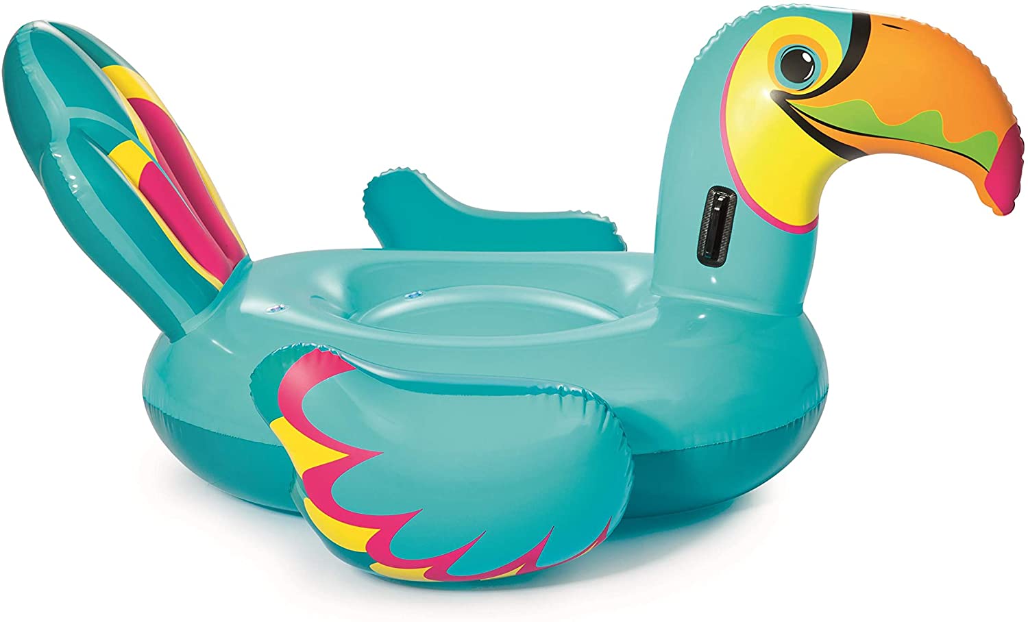 The Super bright Tipsy toucan ride-on is perfect for hanging around the pool! The vibrant colors on this personal pool float are sure to make it the life of the party. Plus, the ultra-durable vinyl Will prevent damage All throughout the summer (and beyond)! relax out in the sun on this majestic bird, which comes with two handles to make it easy to carry around, or use when in the pool to get on and off easily.