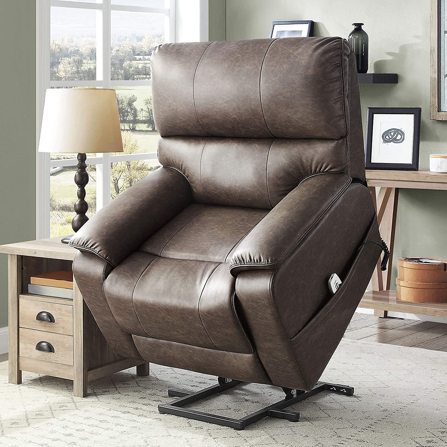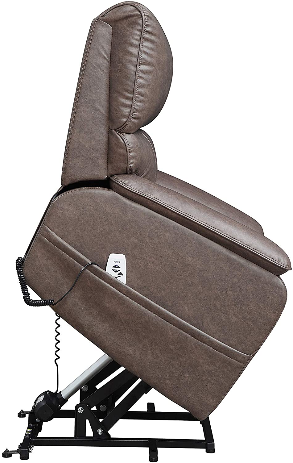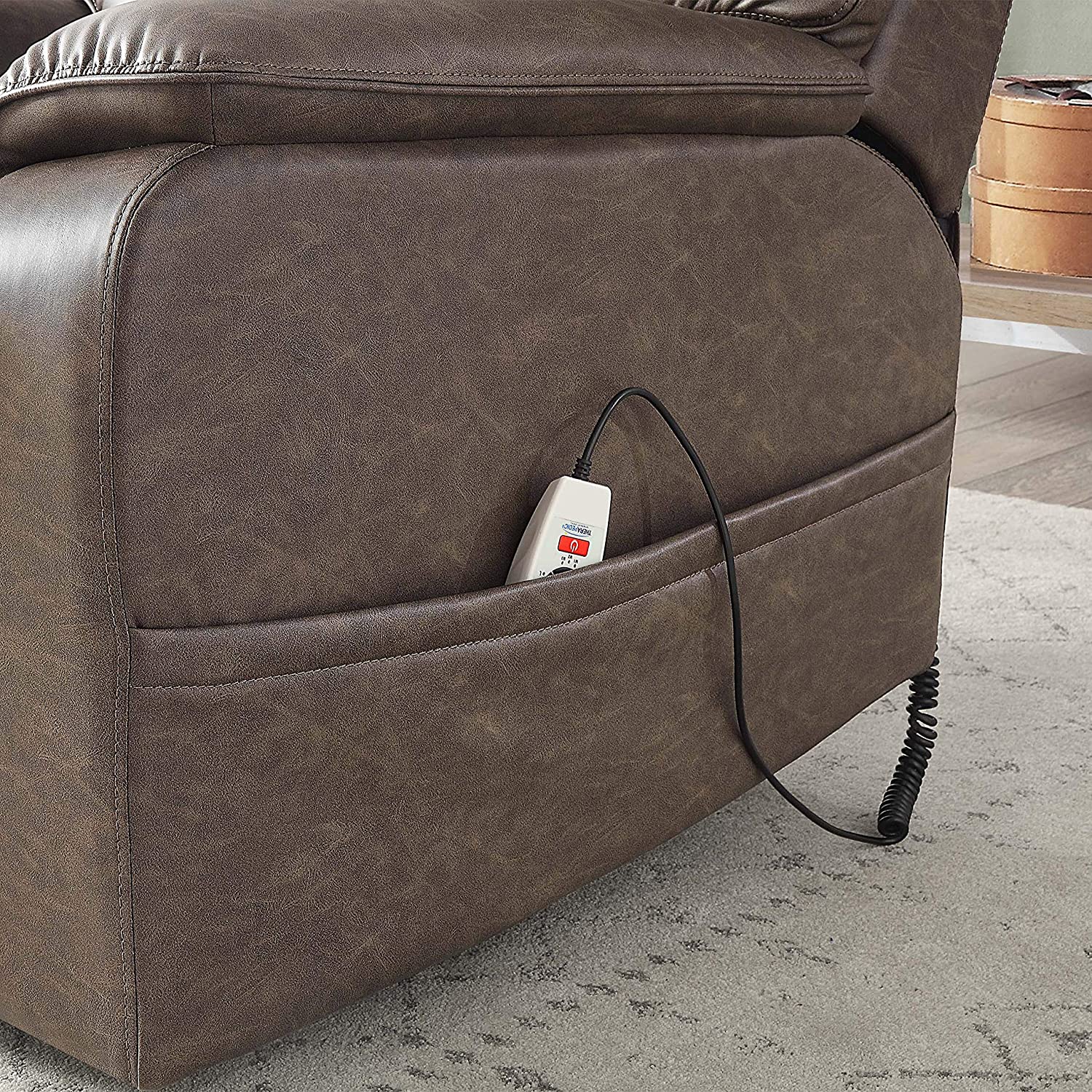 Comfort, functionality and luxury all wrapped in one! The Better Homes and Gardens Deluxe Lift Recliner provides a premium seating experience. With a high-powered lift mechanism, you are able to get in and out of the chair at the click of a button. The chair can be partially reclined to a comfortable lounge position for watching TV or cuddling up with a good book. The fully reclined position is ideal for taking a quick nap. While relaxing in this generously padded recliner you can enjoy the luxurious features of the massage and heat functionalities it is equipped with. The independent, multi-level, heat and massage controls allow you to customize a premium comfort experience that will feel like you are at your own spa retreat. The chair includes a convenient control handset to operate chair functions, including position, heat and massage settings. The chair features a convenient side pocket for storing remotes, magazines and other smaller accessories. The attractive gray brown faux leather fabric enhance the character of any room and coordinate with a variety of color palettes and room styles. The fabric cleans up easily to keep your looking good as new over time.