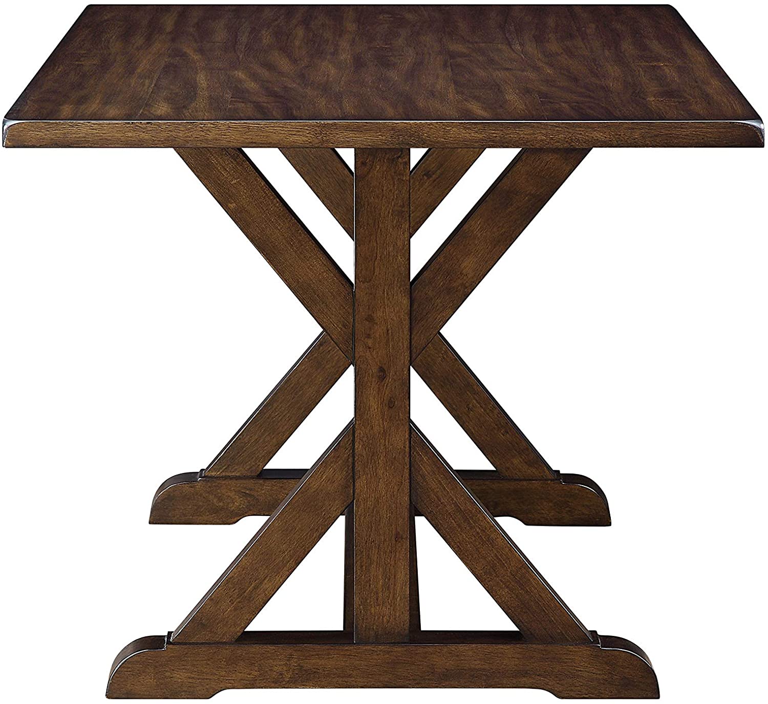 The Granary Modern Farmhouse Dining Table brings classic farmhouse charm into your dining room. The table is hand-finished in rich, warm brown tones that enhance the natural beauty of the wood grains. The trestle style base adds an architectural flare to the table elevating its character. Crafted from solid wood, the durable construction ensures that you will be enjoying this table for many years to come. It comfortably accommodates up to six people making it ideal for hosting family dinners, holiday gatherings or even game nights with friends. Combine the table with the Granary Modern Farmhouse Chairs, set of 2, and Granary Modern Farmhouse Padded Bench Seat to complete your dining set arrangement. Chairs 2-pack and Bench seat are each sold individually. Add the Granary Dining Table to your home today and make your dining room a favorite room in your home.