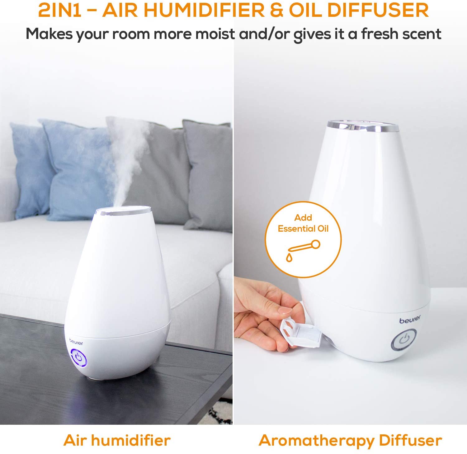 - 2in1 – AIR HUMIDIFIER & OIL DIFFUSER: The German-engineered LB37 combines both, a humidifier & a diffuser, so you can spread your favorite scent throughout your room while filling it with cool mist