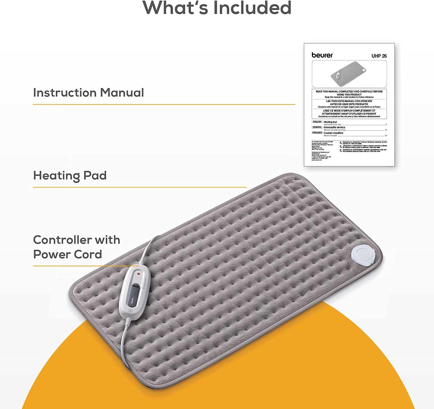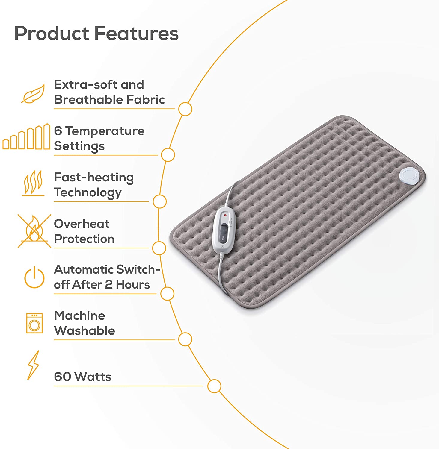 Beurer Large Ultra-Soft Heating pad, Fast-Heating, for Neck, Elbow, Knee, Shoulder, Cramps and Back Pain Relief, 6 Temperature Settings, Machine Washable, auto Shut-Off, overheat Protection | UHP26