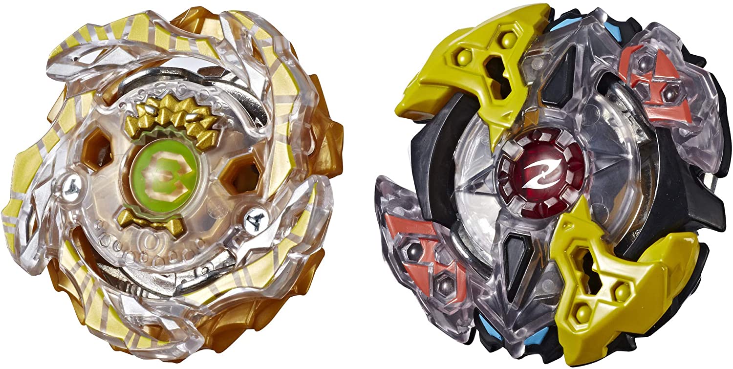 includes 2 Beyblade Burst slingshock right-spin tops consisting of Beyblade Burst: