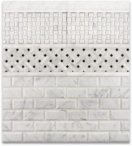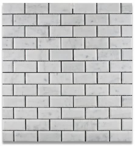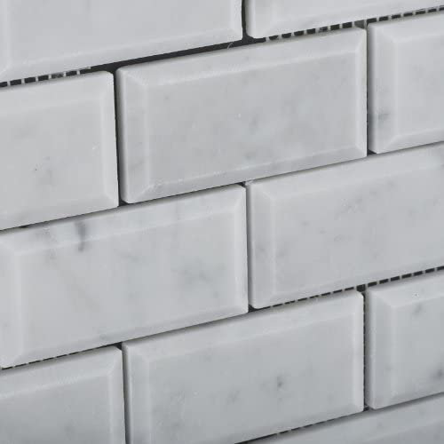 - 50 sq. ft. of Premium Bianco Carrara White Marble 2 X 4 Honed & Beveled Brick Mosaic Tile