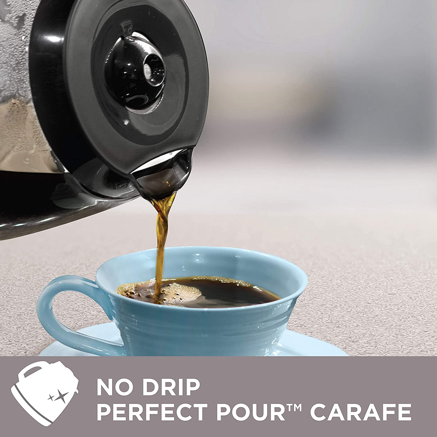 - Perfect Pour Carafe - No more annoying drips! The carafe spout is designed to pour a perfect stream of coffee without dripping or splashing to keep your countertops clean and your coffee mug full