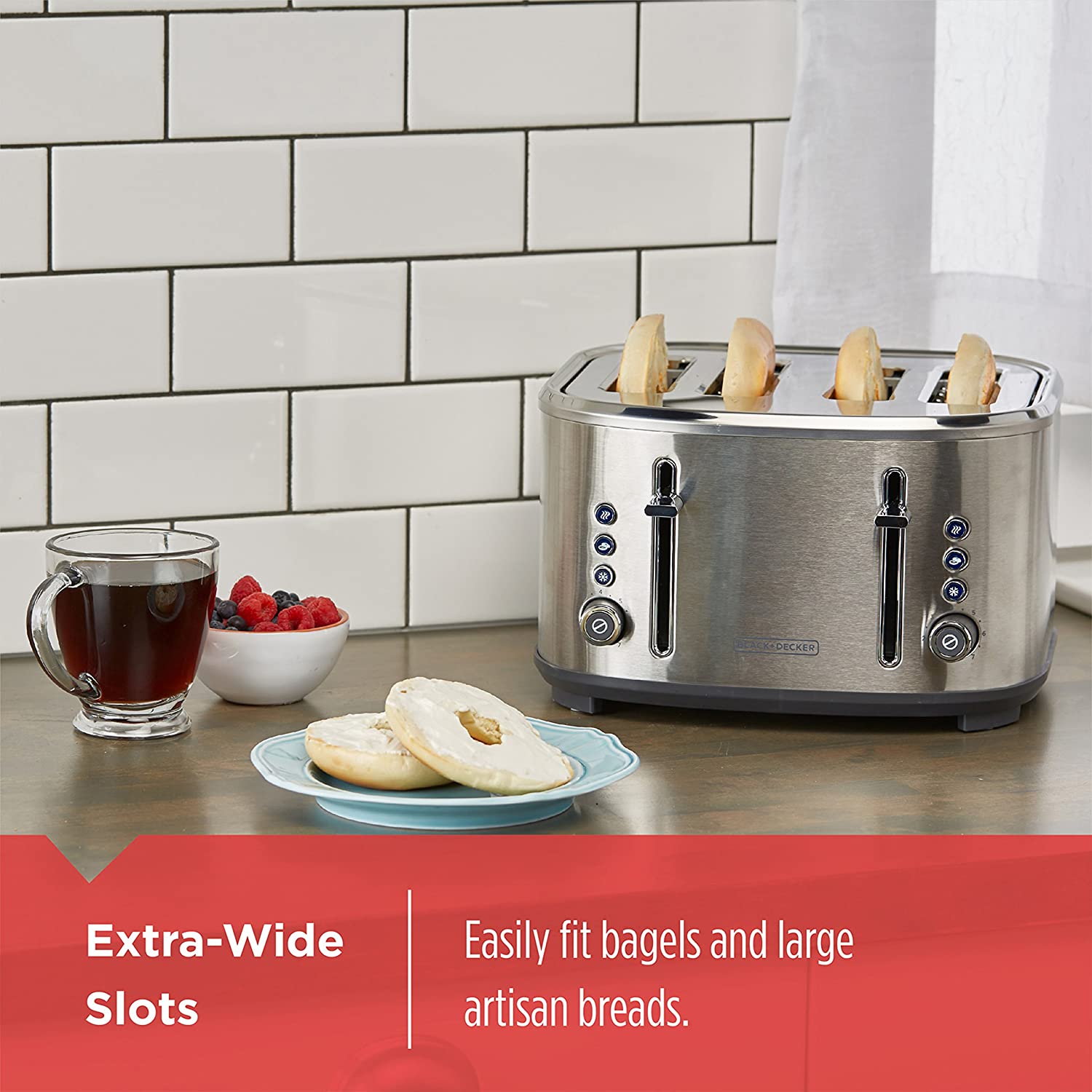 • Extra-Wide Slots - Fit bagels and large artisan breads with ease