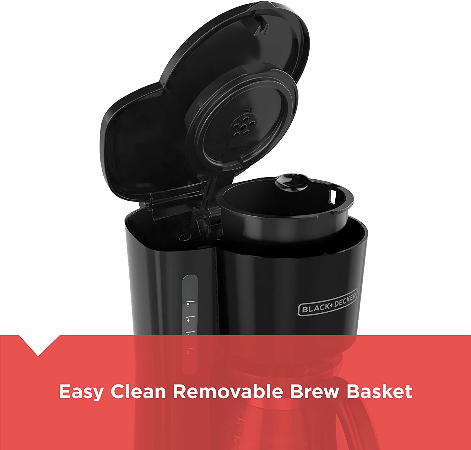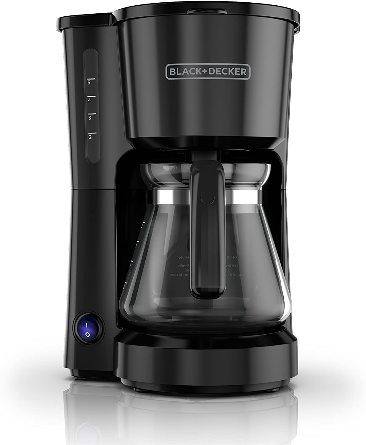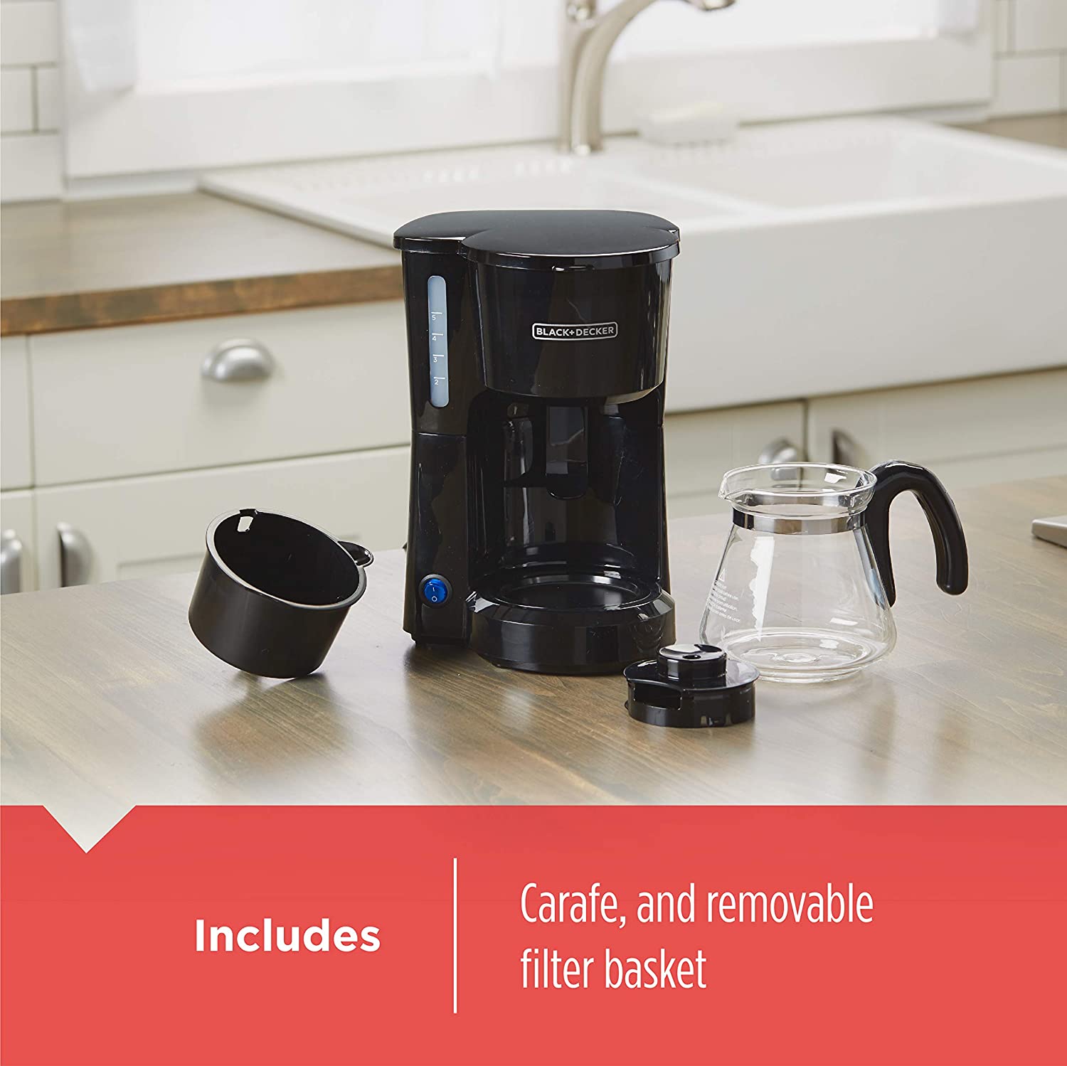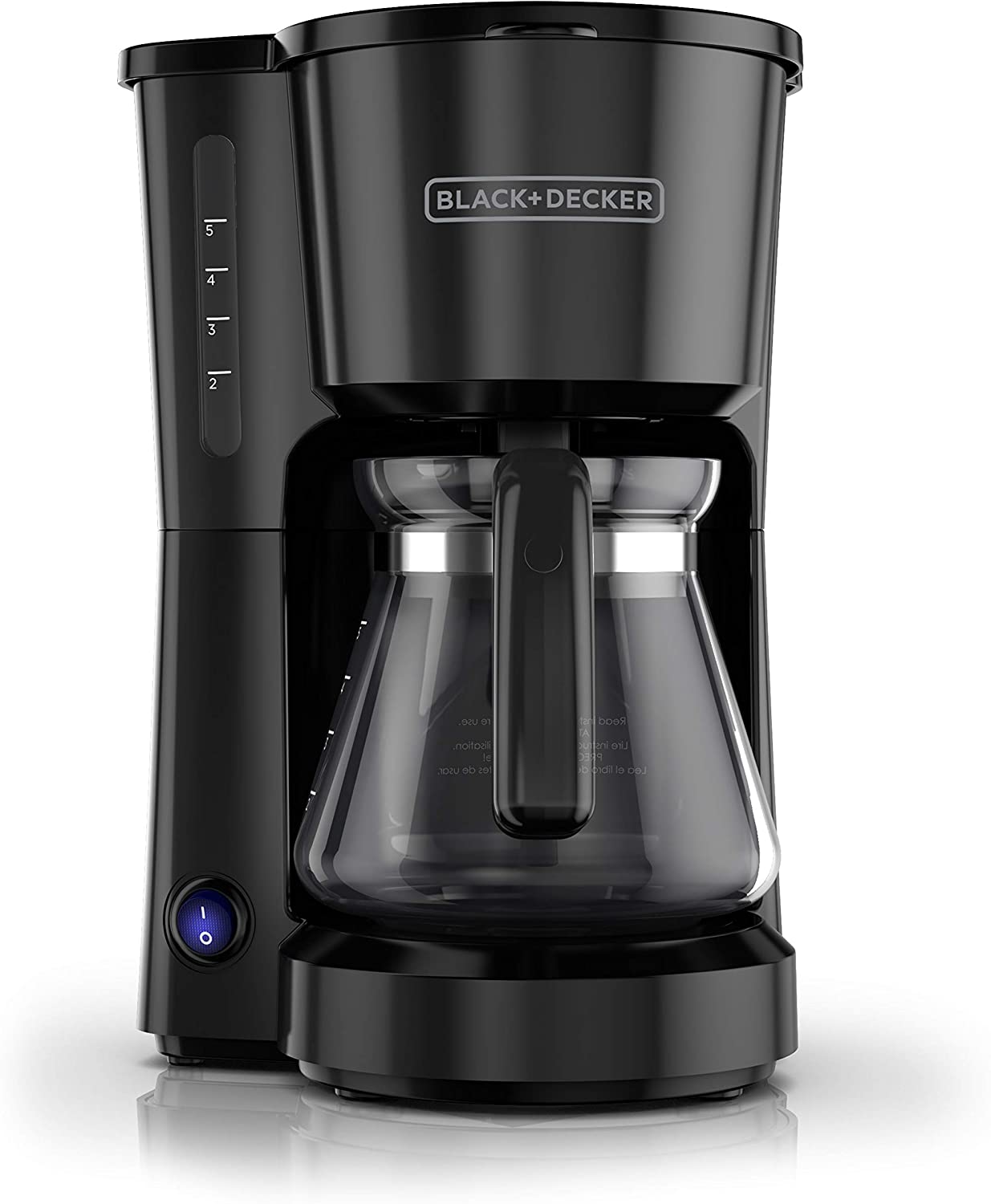 Delicious coffee made easy! The BLACK+DECKER 5-Cup Coffeemaker gets going with the flip of a switch heating water to the optimal temperature for full flavor extraction Coffee brews into the improved 5-Cup Duralife glass carafe which is engineered for comfortable handling and drip-free pouring Black+Decker and the Black+Decker logo are trademarks of The Black & Decker Corporation and are used under license Cup equals approximately 5 oz (varies by brewing technique)