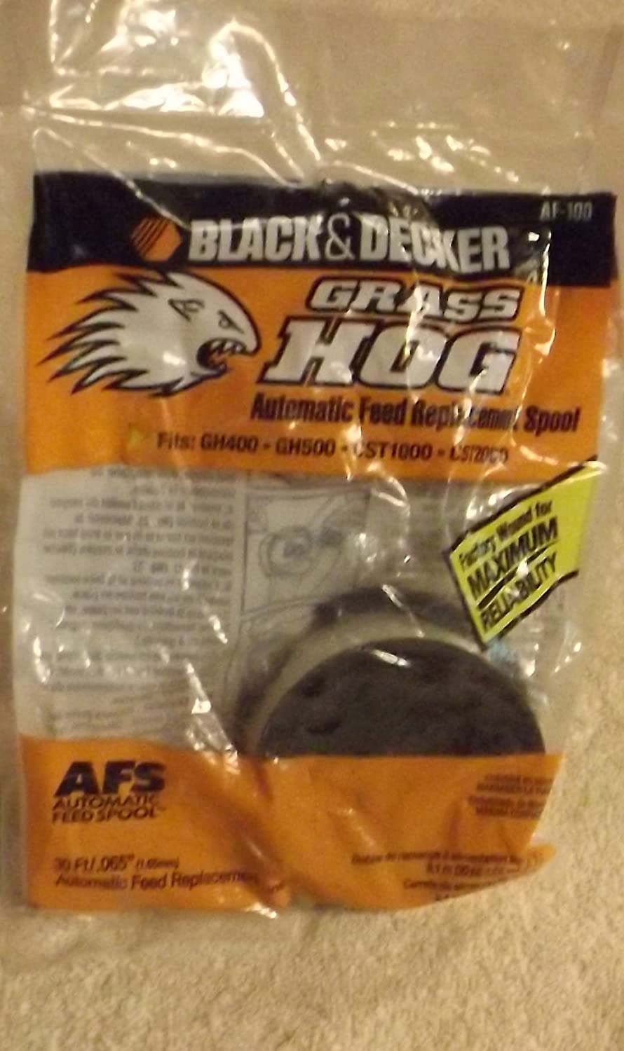 The Black & Decker AF-100-BKP Grass Hog replacement spool is 30-Feet-Feet of .065-Inch line that is factory wound for maximum reliability. This spool fits GH400, GH500, GH600, ST6600, ST7000, ST7700, CST1000, CST2000 and NST2018.