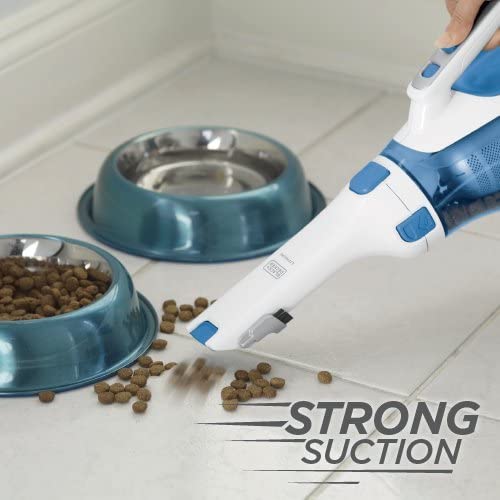 The BLACK+DECKER HHVI320JR02 dustbuster Cordless Handheld Vacuum (Magic Blue) is ideal for multipurpose cleaning in your home, garage, auto and boat. The lithium technology provides strong suction and extended run time. It has a washable bowl (20.6 oz.) and filter which allows for thorough cleaning between Jobs. The translucent, bagless dirt bowl makes it easy to see dirt and easy to empty. This rechargeable hand vacuum has a rotating nozzle for a comfortable hand position when accessing hard to reach areas, along with an extendable crevice tool that provides access to hard to reach areas and a flip up brush which allows you to dust and vacuum upholstery. The cyclonic action helps to keep the filter clean and suction strong. 2.0Ah. This vac has a lightweight and portable design which makes for convenient cleaning. A wall mount provides a versatile storage solution. Includes: hand vac, Jack plug charger, wall mount, extendable crevice tool, flip up brush.