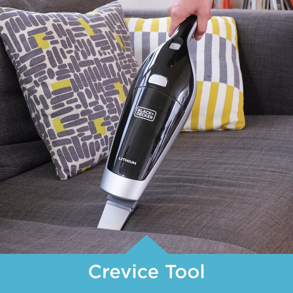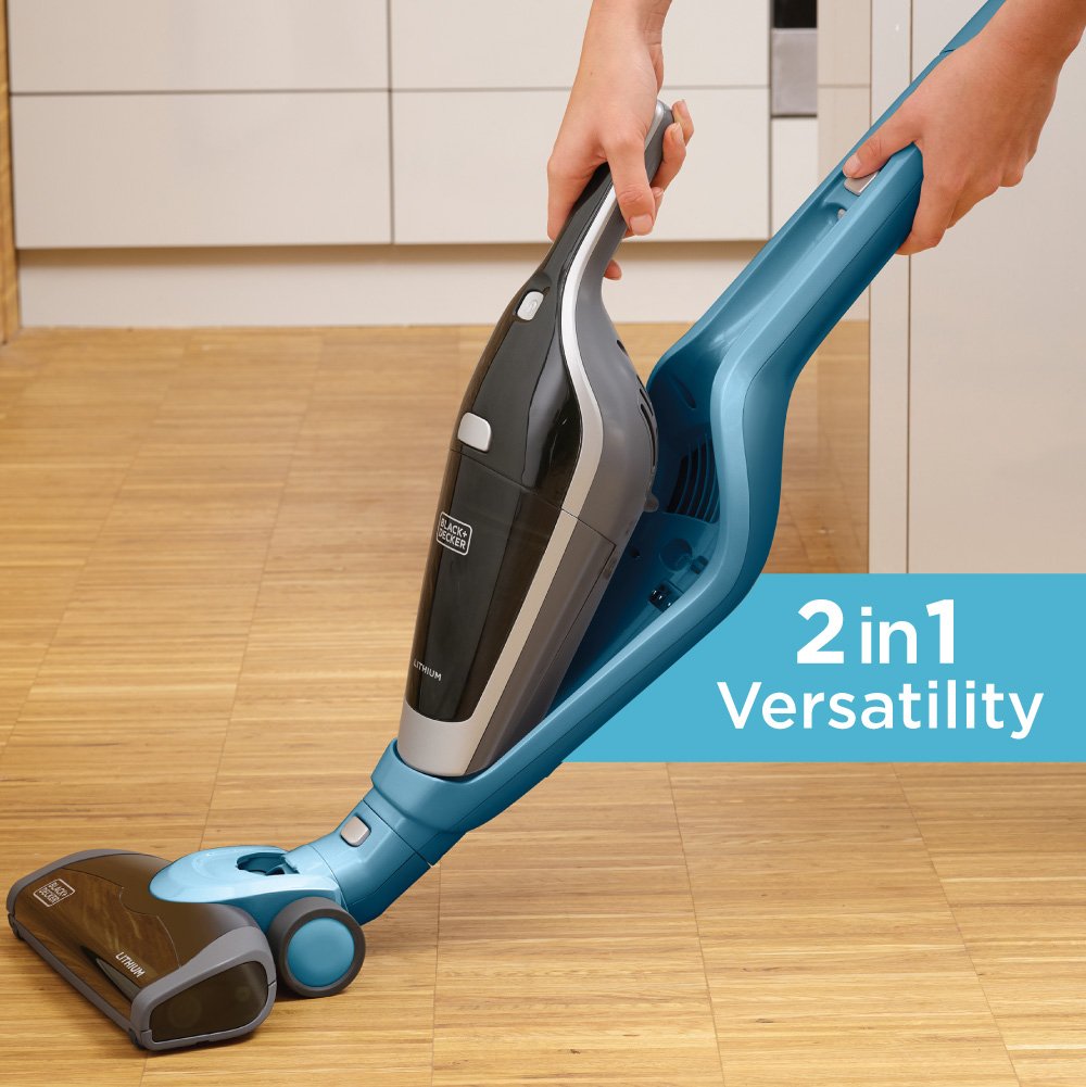 The black+decker HSV420J42 cordless 14.4V lithium 2-N-1 stick + hand vacuum is great for picking up dirt and debris. This 2-N-1 hand/stick vacuum design provides two vacuums in one stylish design for cleaning on and above your floors. Lithium technology with an led indicator that provides a constant update on the battery charge level. The on/off powered brush bar allows you to thoroughly clean your carpets and area rugs with a motorized brushroll, and the detachable brush bar is easy to clean in between pick up Jobs. The smooth pivot steering provides plenty of maneuverability to get around furniture, with a low profile design that allows you to easily reach under furniture while cleaning. It has a self-standing design which lets you stand this vacuum upright where you need it, so it's always ready when messes arise. A translucent, bag less dirt bowl makes it easy to see dirt and easy to empty. Includes: Jack plug charger, crevice tool, brush attachment, pleated prefilter, washable filter.