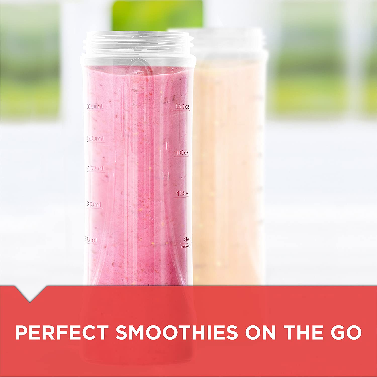- 2 Blending Jars - A pair of 20oz plastic jars is included. They come complete with twist-on travel lids that make it easy to take your beverages on-the-go without spilling. The jars and lids are dishwasher-safe