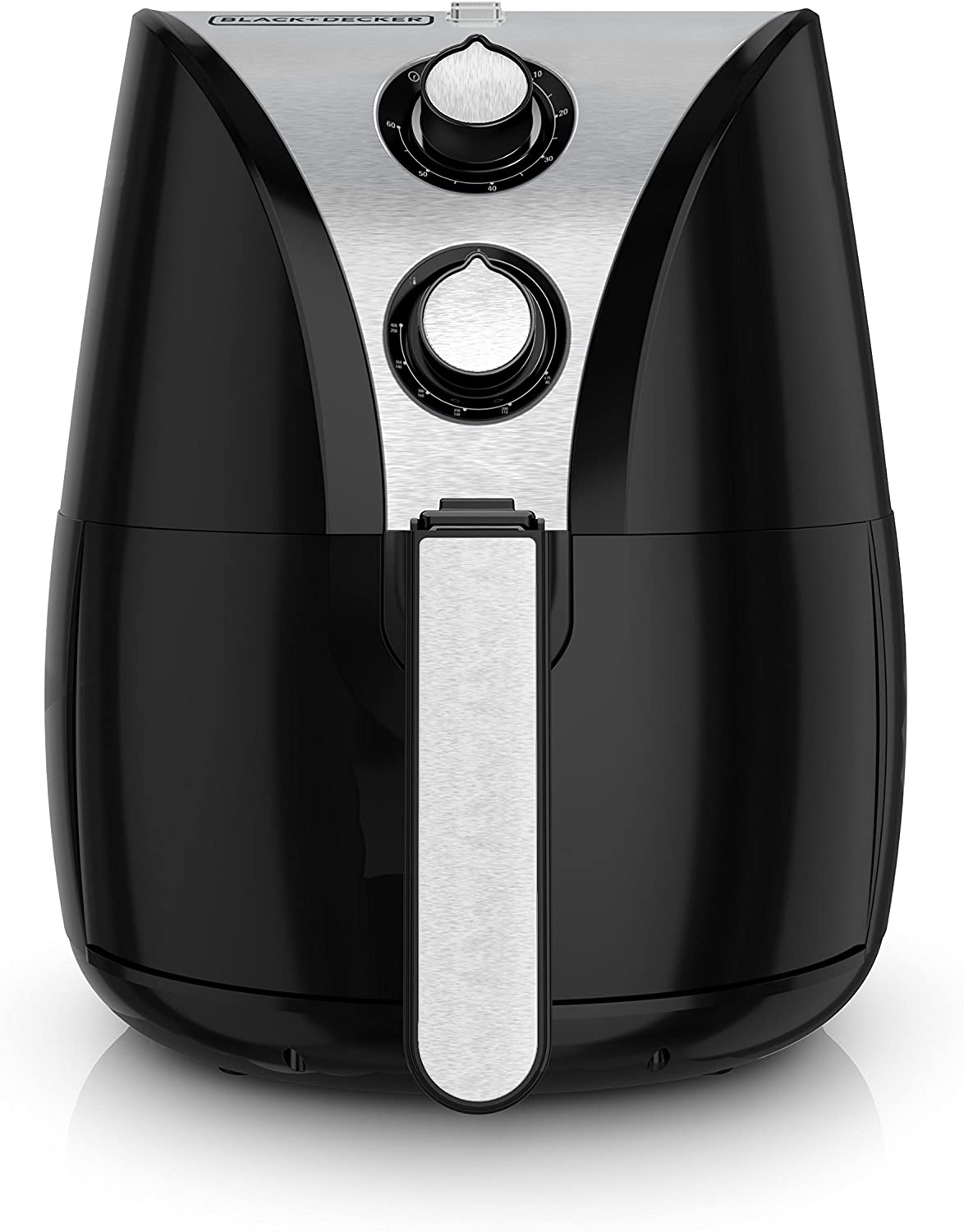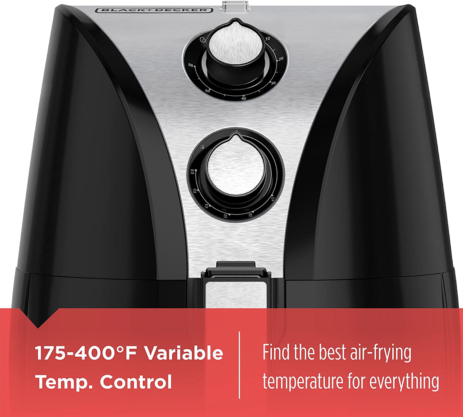 Delicious fried food is finally guilt-free! The BLACK+DECKER PURIFRY 2-Liter Air Fryer cuts out the oil to give you crispy food without the added fat. A pair of powerful convection fans surrounds food with heated air to cook all of your favorite fried delights quickly and evenly. The variable temperature control ranges from 175-400°F and the 60-minute timer automatically shuts off the machine once cooking is complete. The 2-liter air-frying basket is perfect for 2-4, making it easy to air-fry up snacks or a main dish. Plus, the instruction manual includes recipes and tips for cooking all your favorites. The BLACK+DECKER PURIFRY is the revolutionary way to enjoy deliciously crispy fried food with all the flavor and none of the guilt!