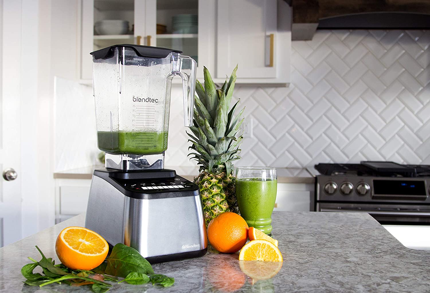 Whip up a fruity smoothie, savory soup, or fresh juice from the comfort of your own kitchen using the Designer 650 blender with Wildside+ jar from Blendtec. The Designer Series uses all the power and performance that makes Blendtec the choice of blending professionals, and combines it with an amazing modern stainless design with advanced functionality, taking Blendtec to a new level in performance blending. Featuring an easy clean capacitive touchscreen interface with eight manual speeds and a pulse setting, the Designer 650 gives you total control of your blending speed with the simple touch or slide of your fingertip. Select any speed or simply slide your finger left to right to increase or decrease speed. The six pre-programmed custom cycles -- Sauces/Batters, Ice Crush/Margarita, Smoothie, Ice Cream, Whole Juice, Hot Soup & Fondues -- allow you to create the perfect blends with the touch of a button, while the included Wildside+ jar ensures those blends will be the smoothest yet. This Wildside+ jar boasts an extra-wide wide base and a narrow fifth “wild” side that helps create a faster, smoother blend. It also features two vertical ridges on the interior walls to disrupt the blending pattern even further and accelerate the blend. What's more, the Designer 650 is backed by a manufacturer's eight year warranty, the longest warranty in its class, making it an appliance you'll love for years to come.9-1/4" L x 7" W x 15-1/2" H