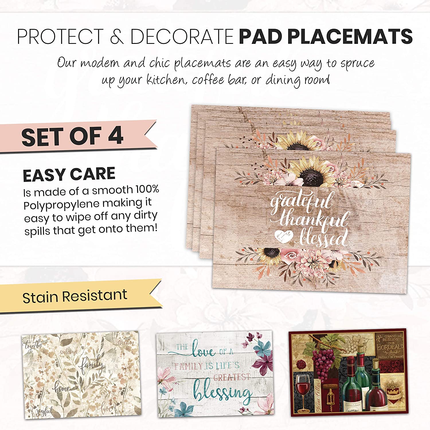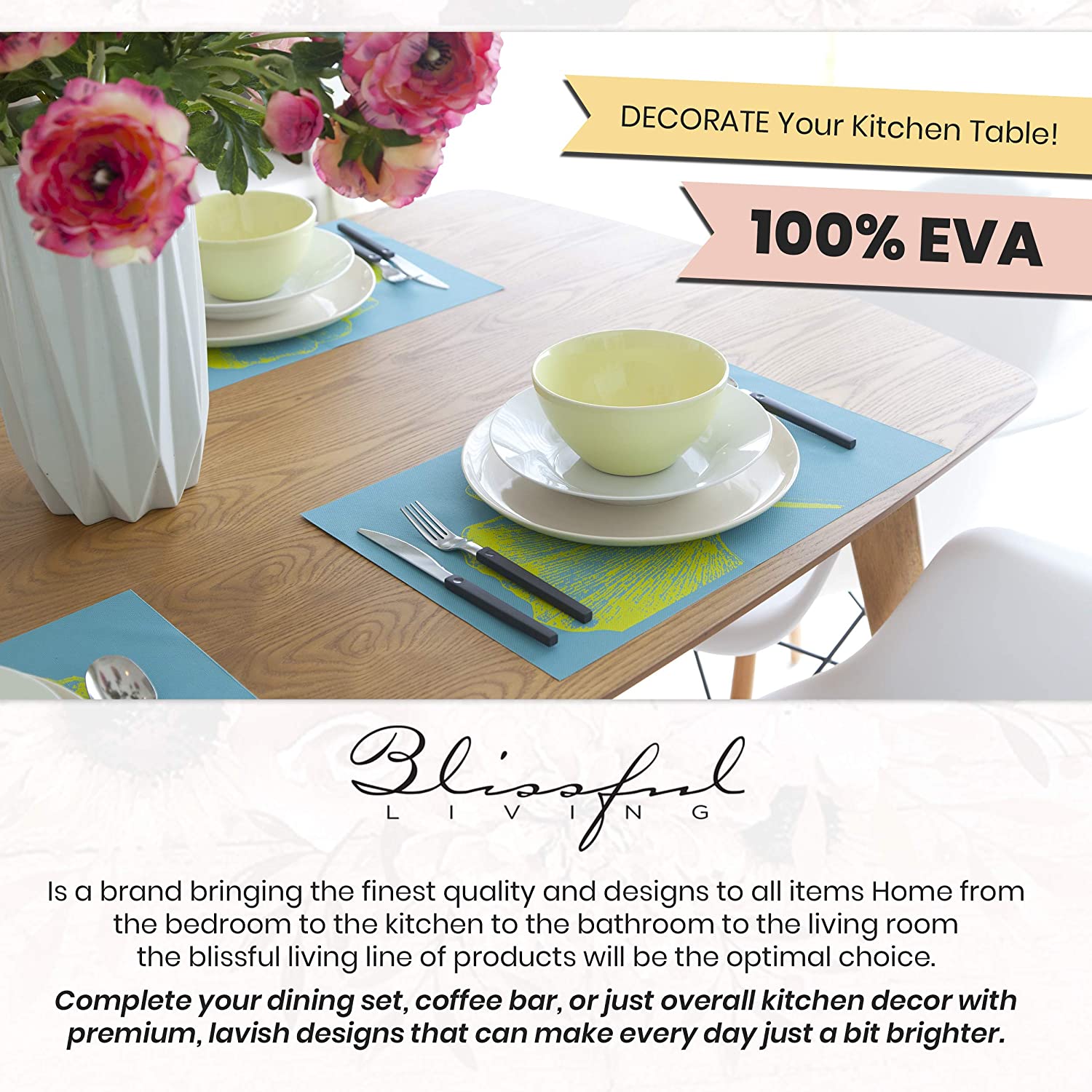 Blissful Living Set of 4 Placemats, Stain Resistant - Decorate Your Kitchen Table with Our Beautiful Rectangle pad placemat