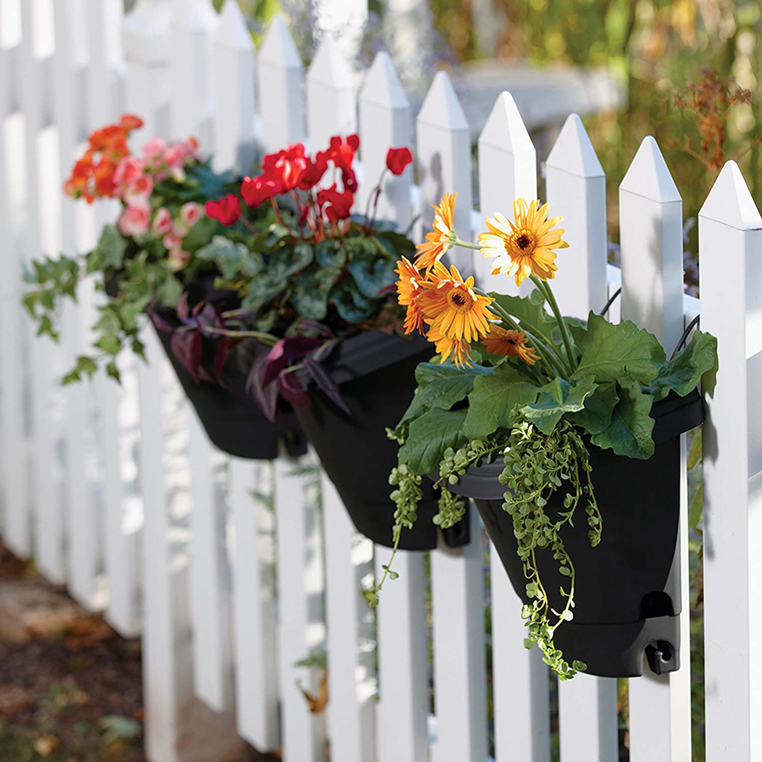 Hanging garden collection by bloem: the innovative design of bloem hanging garden system makes it easy for anyone - even urban gardeners with limited deck space - to expand their planting options & enhance their outdoor environment. Self-watering grids create water reservoirs that reduce watering & improve plant health & side fill holes make watering easy. Simply hang this threepiece system from a deck railing or fence & plant herbs, vegetables, fruits or even bright floral arrangements. 100% UV stabilized polypropylene plastic ensures long lasting color & withstands extreme weather conditions + BPA free built-in self-watering grids create water reservoirs in each planter that helps reduce the frequency of watering while keeping your plants health. Two side holes on each planter make watering quick & hassle-free. The low-maintenance design of our hanging garden system makes harvesting a breeze. The snap-fit, stainless-steel fasteners offer excellent strength to hold your arrangements securely to deck or railing. All-weather durability of our hanging garden system provides lasting value. What's included in box: (3) all weather planters (12"x11" each); (3) self watering planter insert; (3) heavy duty steel rods (12" each); (6) stainless steel fasteners (18" each); packaging includes Complete hanging instructions & planting guide. Includes (3) all weather planters, hanging kit & instructions multiple hanging options included to best fit the location: (3) rust-resistant rods are included to hang planters individually or linked together. (6) stainless steel fasteners measure 18" length & offer a secure fit to most railing, decks or fences. Modular kit design includes everything you need to hang planters vertically, horizontally, alone or together each planter measures 11" height x 12.5" width, & holds approx. 1 gallon of soil/each.