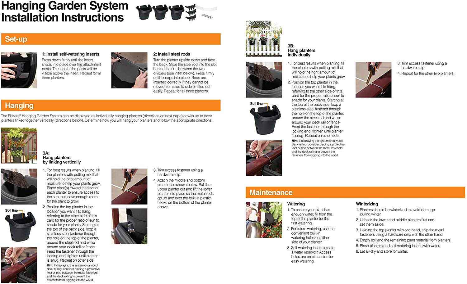• Multiple hanging options included to Best fit the location: (3) rust-resistant rods are included to hang planters individually or linked together.